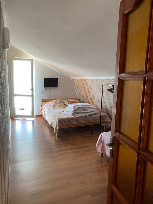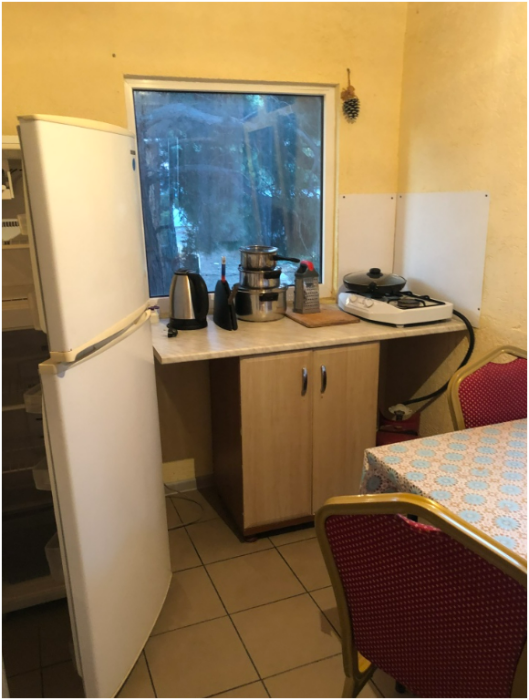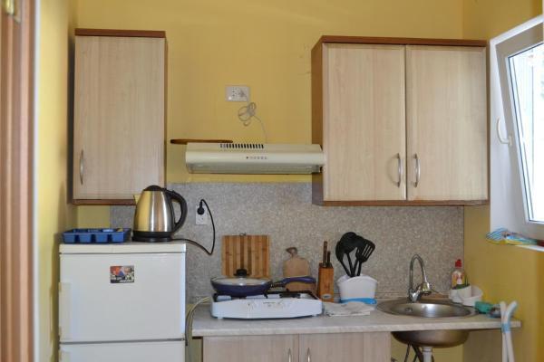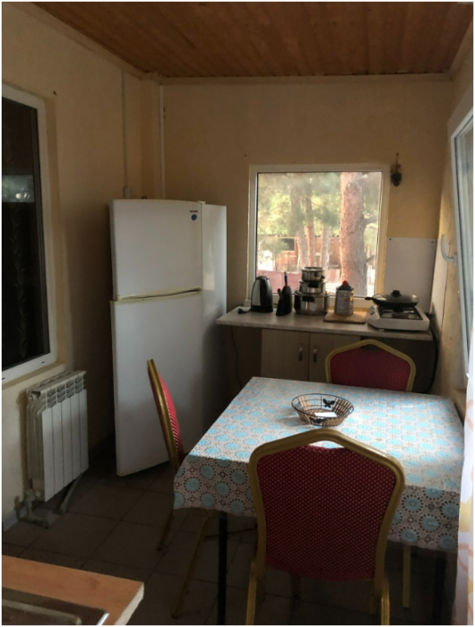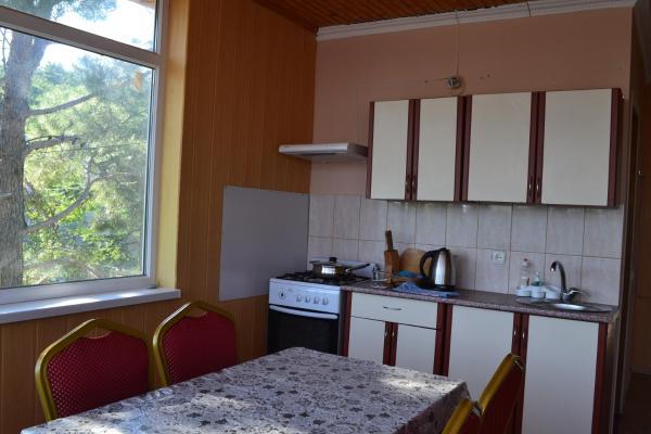В доме имеются однокомнатные и двухкомнатные номера. Однокомнатные номера рассчитаны на 3 человека, двухкомнатные - на 6 человек. Каждый номер со своим входом. В номере имеется вся необходимая мебель: двухспальная кровать, односпальная кровать, постельное белье, полотенца, шкаф, тумбочки, зеркало, Wi-Fi, кондиционер, спутниковое телевидение. Также в каждом номере имеется кухня с обеденной зоной, в которой газовая печь, холодильник и вся кухонная посуда+ столовые приборы. Ванная комната оборудована современной сантехникой, стиральная машина, душевая, туалетная комната. Также бесплатно предоставляется использование стиральной машины, гладильной системы, фена для волос.