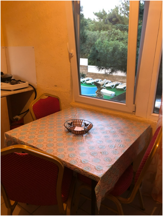 Однокомнатный люкс включает в себя отдельный номер рассчитаный на 3-4 человек. В номере необходимая мебель, шкаф, кровати, тумбочки, телевизор, кондиционер, Wi-Fi. Отдельная кухня в норме со всей посудой, электрочайником, холодильником. Ванная комната обустроена всем необходимым, также выдаются полотенца. Терраса со своей обеденной зоной.