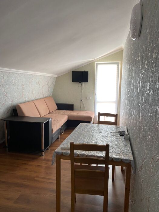 Двухкомнатный люкс включает в себя 2 раздельные комнаты с общей большой кухней и ванной комнатой. Каждая комната расчитана на 3 человек, вообщем номер на 6 человек , например компания. В номере вся необходимая мебель, кровати, шкаф, тумбы, кондиционер, Wi-Fi также имеются. Кухня оборудована всей посудой, газовая плита, холодильник. Большая обеденная зона. Ванная комната содержит все необходимое, также выдаются полотенца на каждого человека.