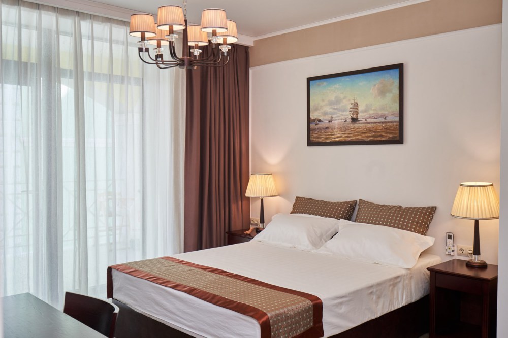 Все гостевые студии выдержаны в мягких кремовых тонах, оснащены душевыми кабинами, современной мебелью с ортопедическими матрасами, мини-сейфами, чайными наборами, наборами полотенец, фенами. Используется только высококачественный текстиль. Комфортные и удобные студии выполнены в трех стилях: классика, прованс и модерн. Вода горячая и холодная подается круглосуточно из собственной артезианской скважины и проходит дополнительную многоуровневую очистку.