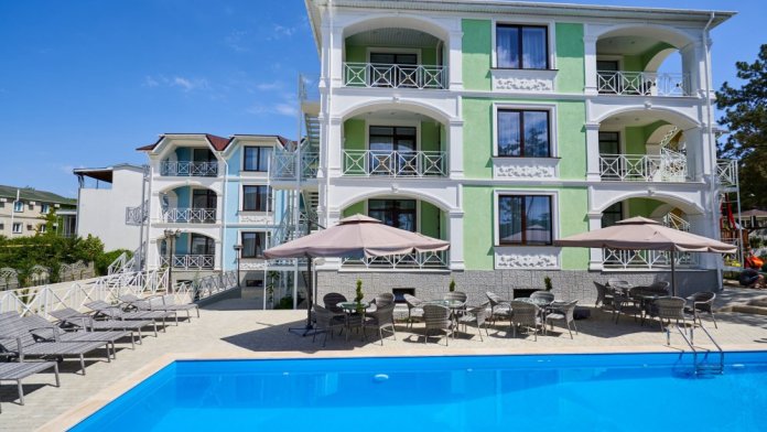 Вилла в Севастополе – это 3 современных виллы с гостевыми студиями и уникальная территория с современным ландшафтным дизайном, подогреваемым бассейном под открытым небом, кафе, детской площадкой и охраняемой парковкой. Вилла находится на закрытой территории на берегу уникальных песчаных пляжей города Севастополя. Современная вилла 2019 года открытия полностью соответствует самым высоким требованиям гостей как для семейного отдыха, так и для деловых командировок.