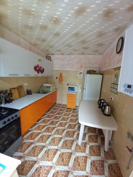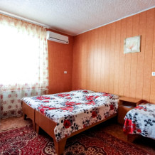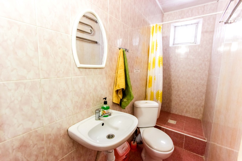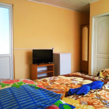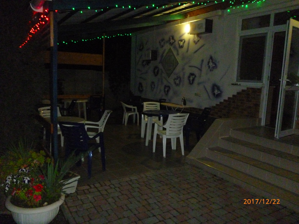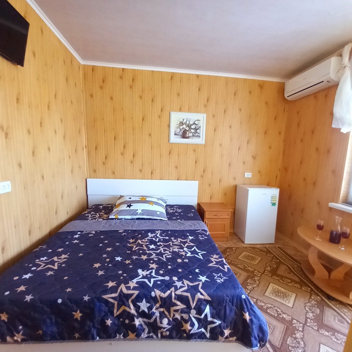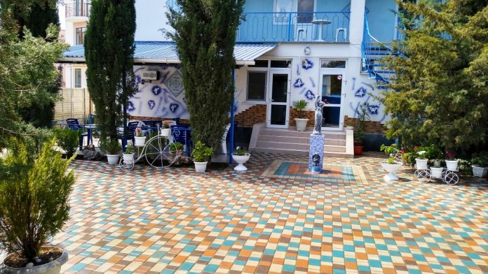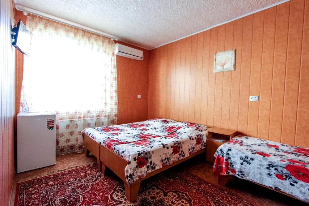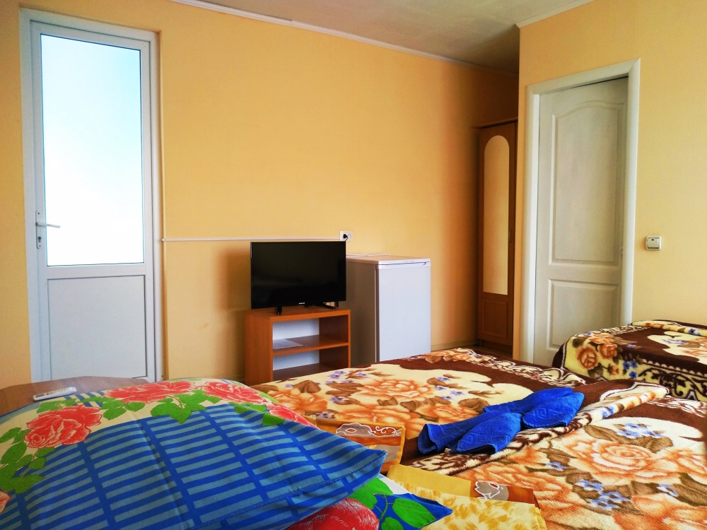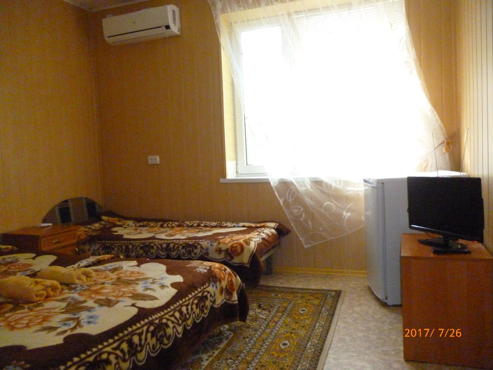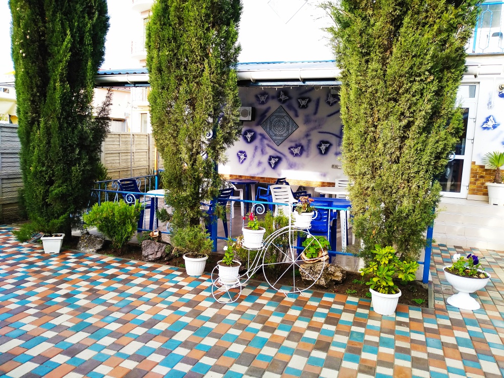 До набережной и пляжа 600 метров по ровному рельефу.Пляж песчано-галечный,бесплатный.В гостевом доме 13 номеров,2-местные и 3-местные.Все номера с удобствами( туалет,душ,раковина),с кондиционерами,холодильниками,телевизорами и др.WI-FI бесплатный на всей территории и в номерах.Имеется кухня общего пользования,большая летняя площадка,где можно посидеть отдохнуть и принять пищу.Имеется мангал.Вся территория утопает в зелени кипарисов,туй,цветов.Очень тихий р-он,близко к морю.