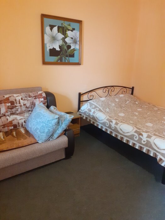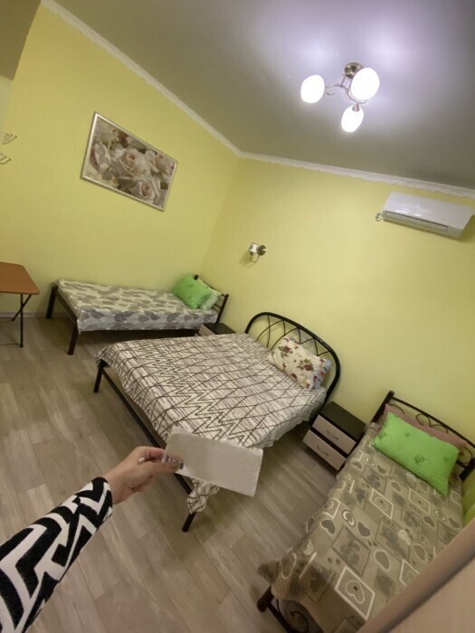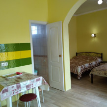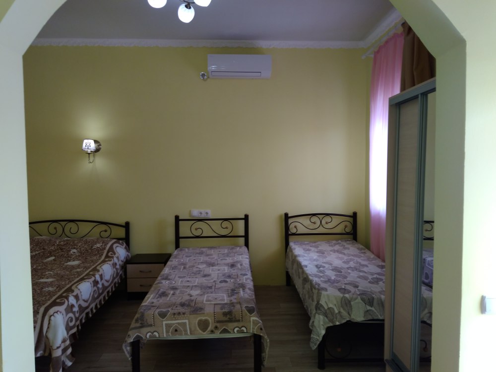 В номерах есть: душ, туалет, кровать 160 см с хорошим матрасом и кровать 80 см, телевизор, интернет Wi Fi, чистое постельное белье, шкаф для одежды и прочая мебель, возле номера беседочка с садовой мебелью (стол, стулья).