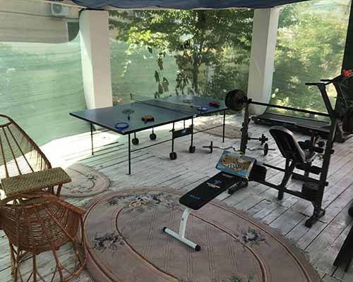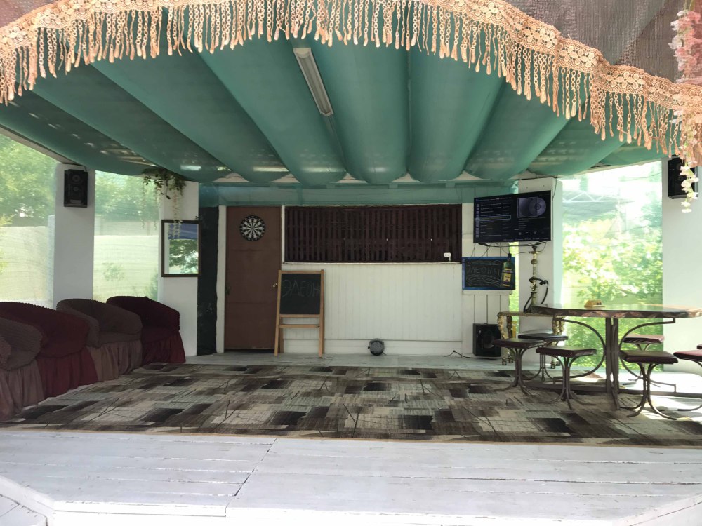 Богатая инфраструктура двора позволяет разнообразить отдых для детей и взрослых не выходя с территории. Большой 25*6 м и глубокий от 1,4 до 2,5 м бассейн с теплой пресной водой, а также лежаками и зонтиками вокруг бассейна для купания и загара. Столовая с баром для организованного комплексного питания и банкетов, общая кухня и мангалы с крытыми верандами для самостоятельного приготовления и веселых посиделок. Детская площадка для всех возрастов с батутом и лабиринтом, русский бильярд и стол для пинг-понга, а также фитнес зона с тренажерами и турниками на свежем воздухе для активного отдыха. Бесплатная парковка на охраняемой территории и ежедневный трансфер на городской, оборудованный пляж. Все это бесплатно. За дополнительную плату - дровяная банька.
