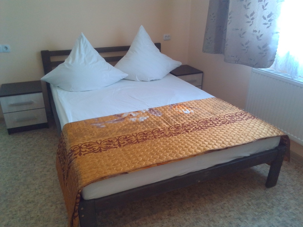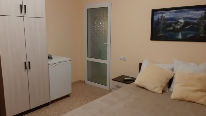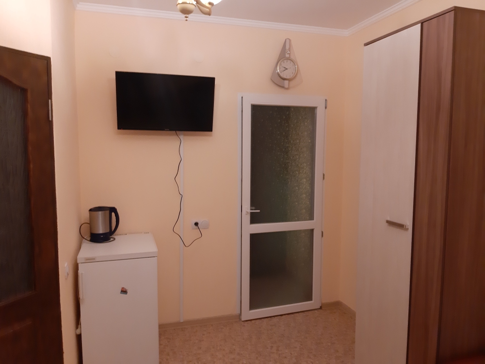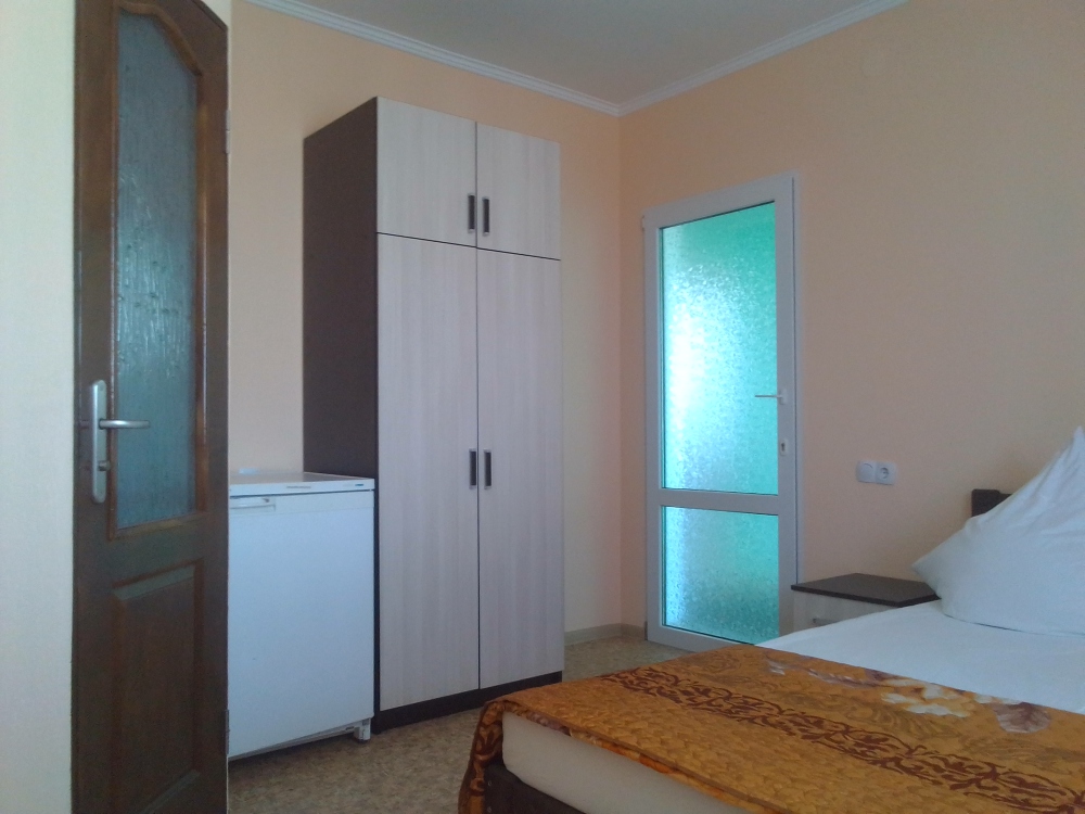 Уютный номер с двумя кроватями, кондиционером, телевизором, холодильником и санузлом. Так же в номере имеется шкаф для одежды и прикроватные тумбы.