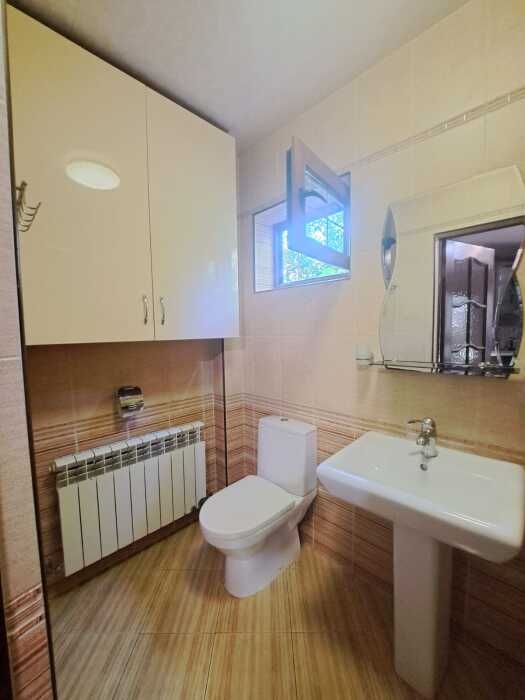 Дом с закрытым индивидуальным двориком. На первом этаже расположена кухня и санузел с душем, одна из спален, а на втором: холл, вторая спальня с выходом на террасу. По спальным местам: две двуспальные кровати и диван. Размещение до 6 человек. Возможно использование электрошашлычницы или электромангала, что именно будет, укажу позже. Все удобства: кондиционера, плазменные ТВ. СВЧ-печь и газовая плита с духовкой, интернет беспроводной.