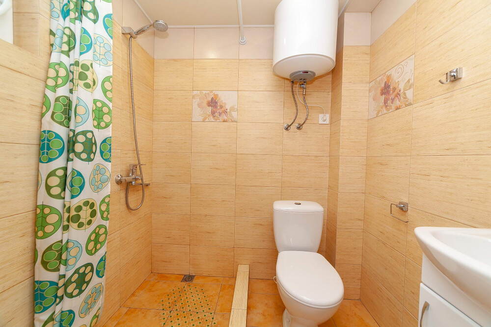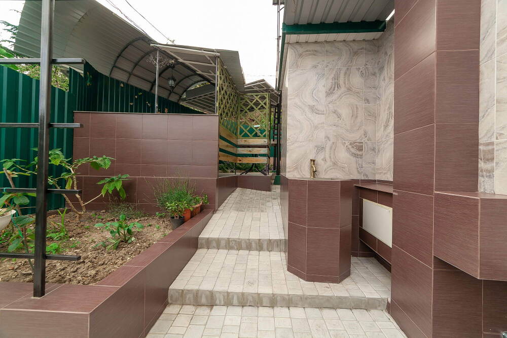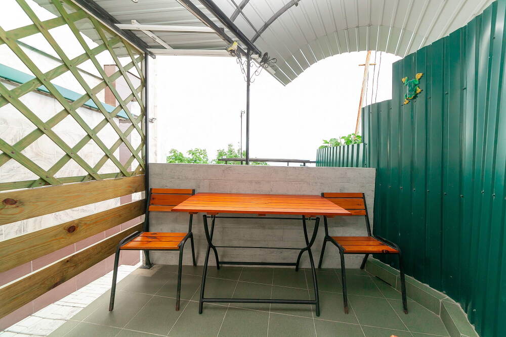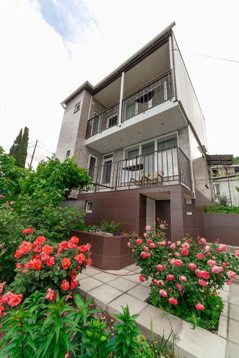 Свежий ремонт, вся мебель новая. В студии имеется двуспальная кровать и односпальный диванчик, кухня с полным набором всех необходимых принадлежностей, душ, санузел, балкон, с которого открывается шикарный вид на море и на большую часть южного побережья, интернет – TV, WI-FI, кондиционер. Огороженный двор с беседкой, мангал, барбекю.