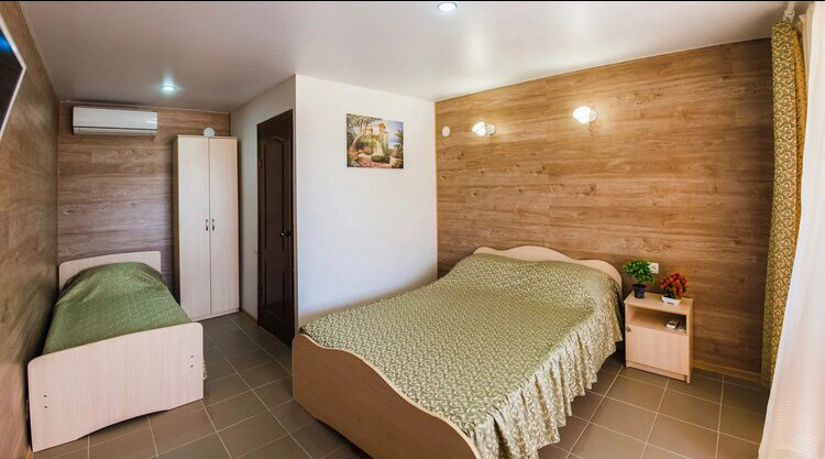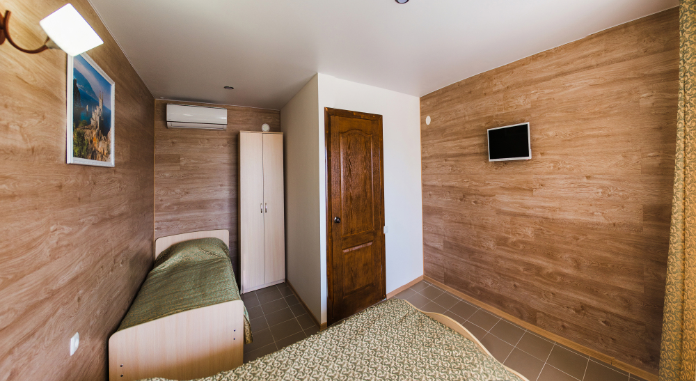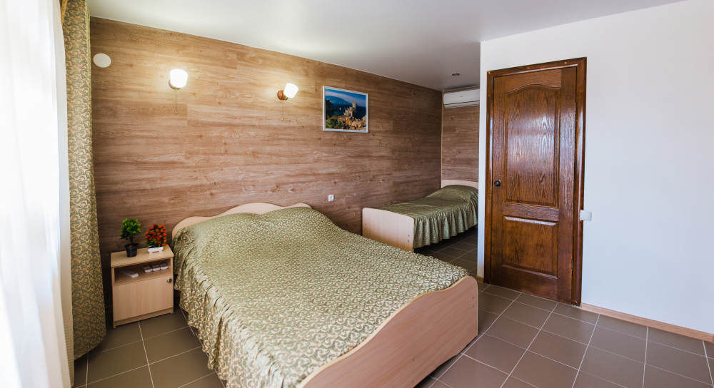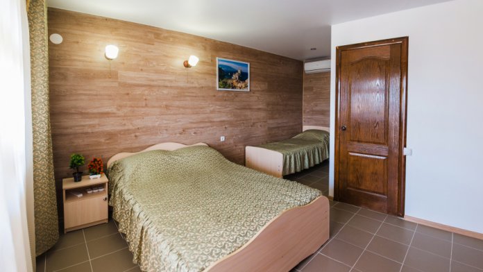 Все номера имеют террасу с видом на море и внутренний дворик. Все номера с удобствами: душ, туалет, горячая вода, интернет, ТВ-Т2, кондиционеры. Кроме этого у каждого номера на 1-м этаже имеется своя отдельная терраса ,где уютно расположен столик и удобные садовые кресла.