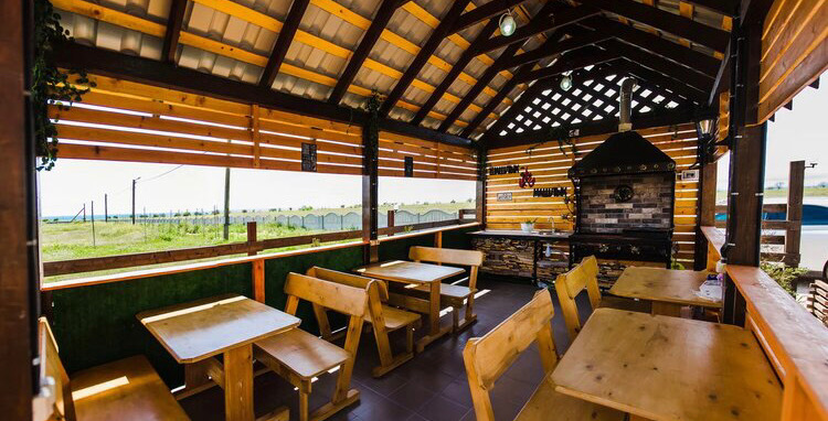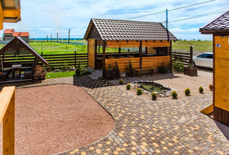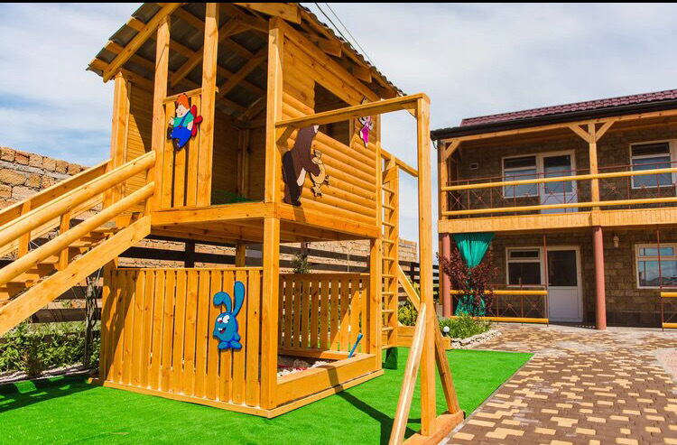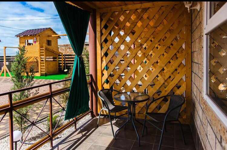 На территории расположена деревянная беседка для компании на 6-7 человек, а так же летняя веранда в которой могут разместится за удобными столами еще 12-15 человек с мангальной зоной внутри, и с видом на море; детская игровая площадка с горкой, песочницей,шведской стенкой,канатной сетью,качелей,домиком из 2-х этажей), кухня для приготовления пищи, где есть все необходимое (плиты,посуда,столовые приборы,холодильник, микроволновая печь,чайник и т.д. При необходимости предоставляется детская кроватка. Имеется стиральная машина, все необходимое для приготовления шашлыков, мяса на гриле, казан, тандыр, уголь ( все вышеперечисленное предоставляется за дополнительную плату и в стоимость проживания не входит). Расстояние до песчаного белоснежного пляжа Беляус (Крымские Мальдивы) и чистейшего открытого моря - 800 метров.