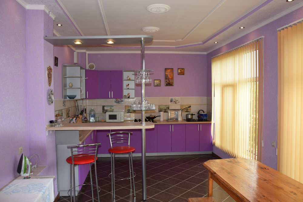 Уютные и комфортабельные 2-х, 3-х местные номера с возможностью установки дополнительного спального места. Каждый номер оснащен удобной мебелью, персональным набором посуды, холодильником, телевизором (с плоским экраном), кондиционером, спутниковым телевидением, бесплатным wi-fi, возможностью отдыха за столиком напротив своего номера либо в беседке. Наша мини-гостиница располагает вместительной общей кухней-столовой, оснащенной всем необходимым для приготовления пищи.