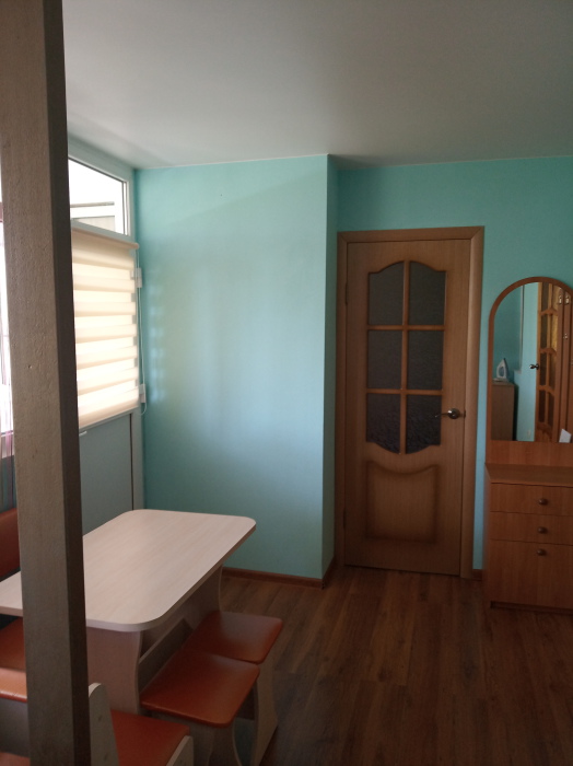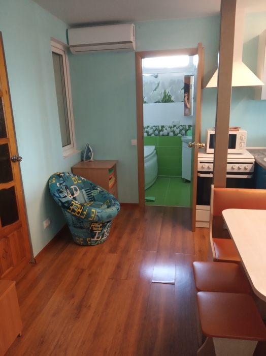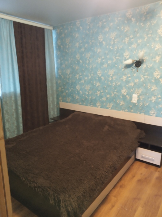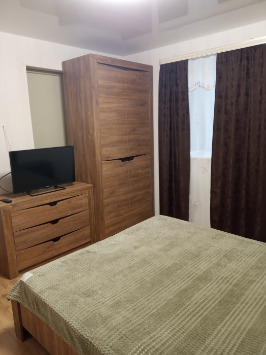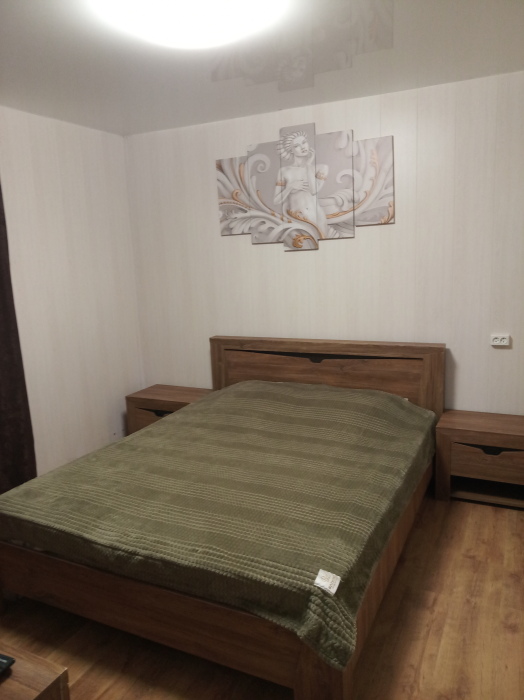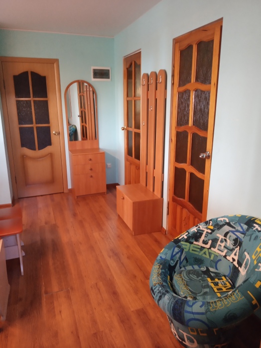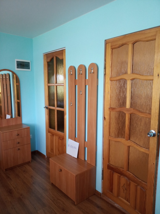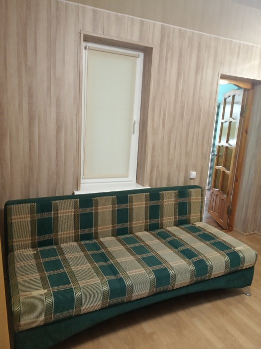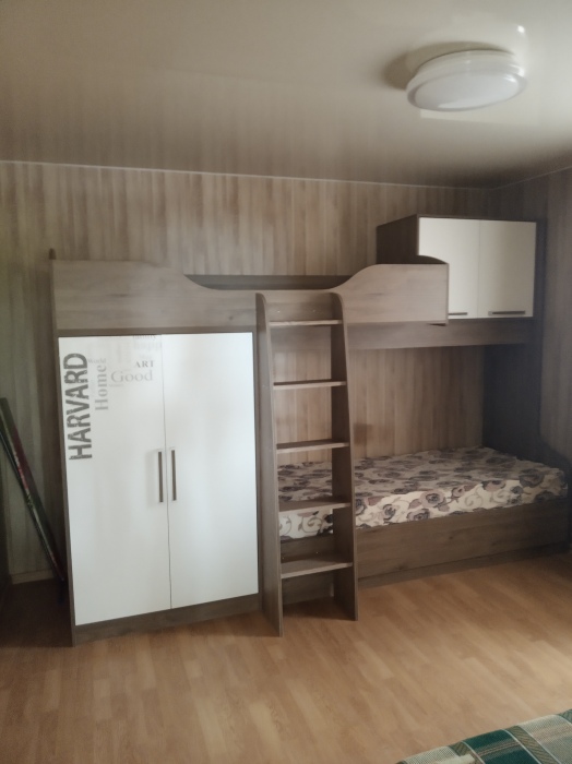 В одной из комнат мягкий уголок (на нём может разместиться 2 человека) и двухспальный диван, в другой комнате двухъярусная кровать и двухспальный диван, в спальне двухспальная кровать. Кухня оборудована посудой. Всё необходимое для проживания имеется.
