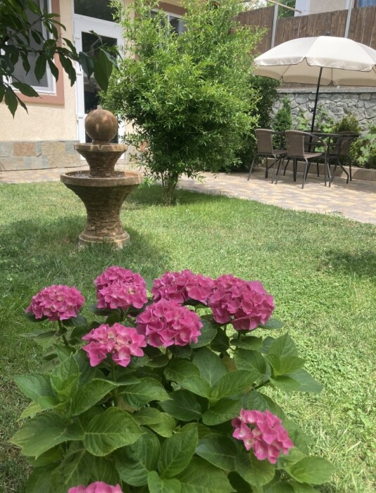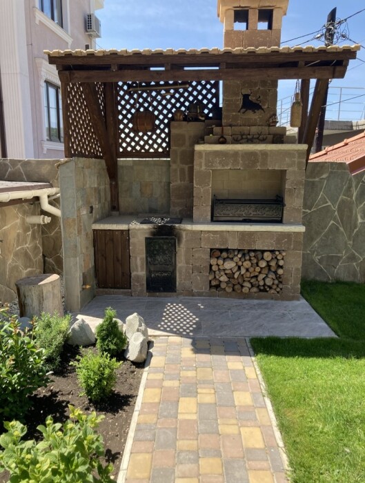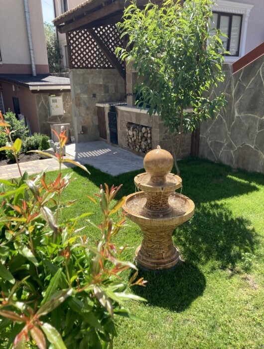 В летней кухне есть холодильник, варочная поверхность, духовка, микроволновка, вся необходимая посуда для приготовления пищи, электрочайник, холодильник. На территории есть мангал, во дворе зона отдыха, фонтан. Рядом с домом находится неохраняемая парковка.