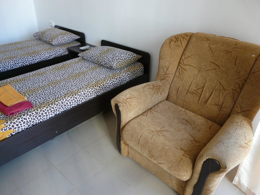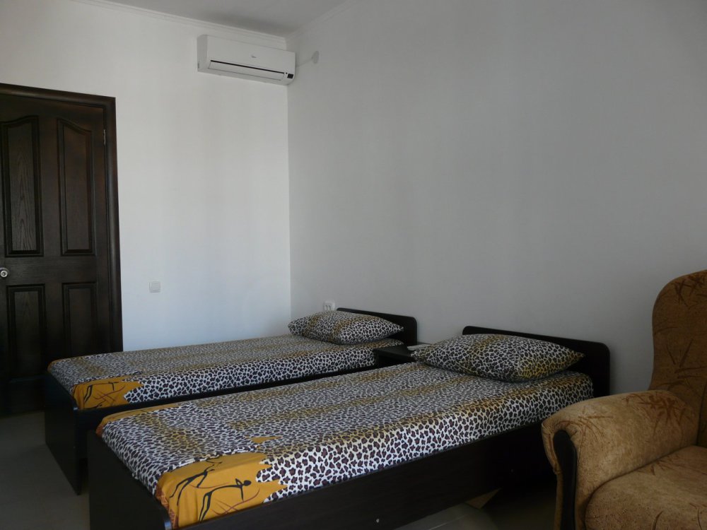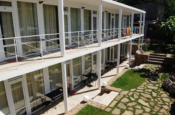 Наш гостевой дом представляет собой двухэтажное здание, на первом этаже которого находятся 5 номеров и большая летняя кухня со всем необходимым (газовый балллон, микроволновая печь, разделочные столы), а на втором этаже есть 6 номеров с общим балконом. Окна во всех номерах выходят во двор. Территория нашего гостевого дома обширна и комфортна для отдыха. Здесь Вы найдете детскую площадку, фонтан, место для барбекю, большой каркасный бассейн для детей и взрослых.