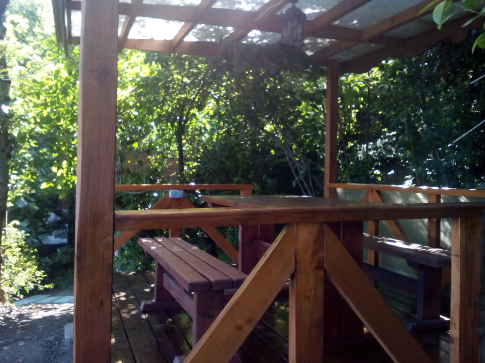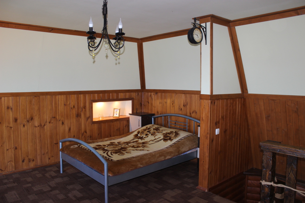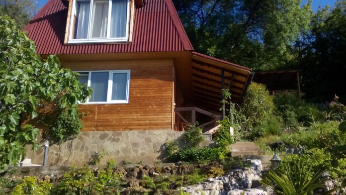 Сдаётся деревянный дом на 2-4 человек. Дом двухэтажный, двухкомнатный. На первом этаже: комната для 2 чел., кухня-студия (газовая плита, холодильник, электрочайник, набор необходимой посуды), санузел. На втором этаже расположена большая комната для 2 чел. Обе комнаты с видом на море. Подключен Wi-Fi, работают кондиционеры. К дому пристроена веранда. Кроме того, во дворе построена общая беседка с панорамным видом, установлены садовые качели. Можно пользоваться мангалом. За воротами двора есть место парковки.