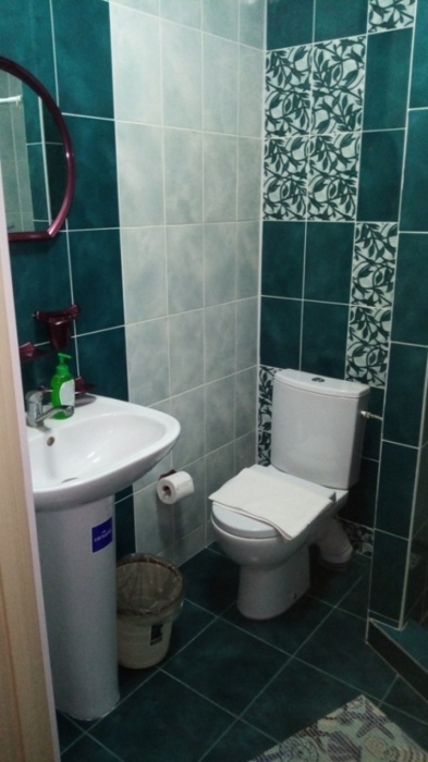 Номер двух комнатный состоит из двух раздельных комнат. Номер оборудован современной мебелью ( кровати с ортопедическими матрацами,прикроватные тумбочки, журнальный столик, шкаф,комод), Smart телевизор 32 диагональю, кондиционер. Санузлы оборудованы современной сантехникой. Горячая и холодная вода подаются круглосуточно. Большой балкон и летняя мебель.Возможно доп место 600 р/сутки.