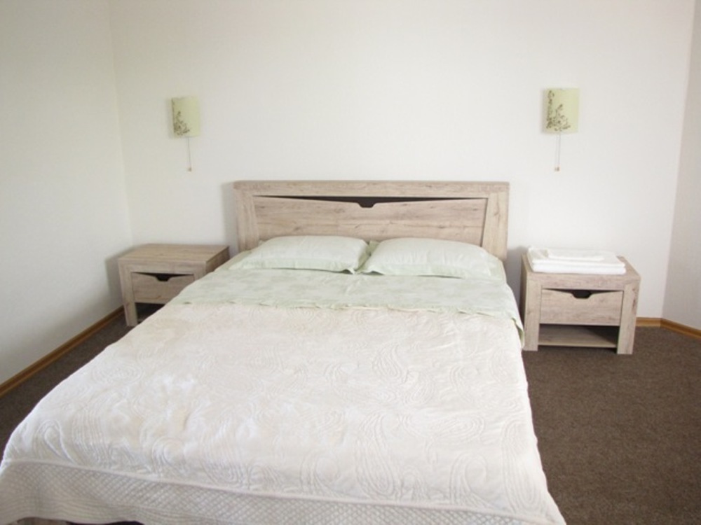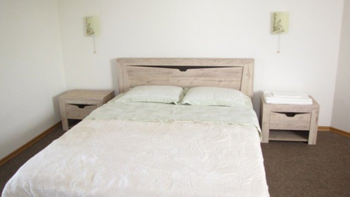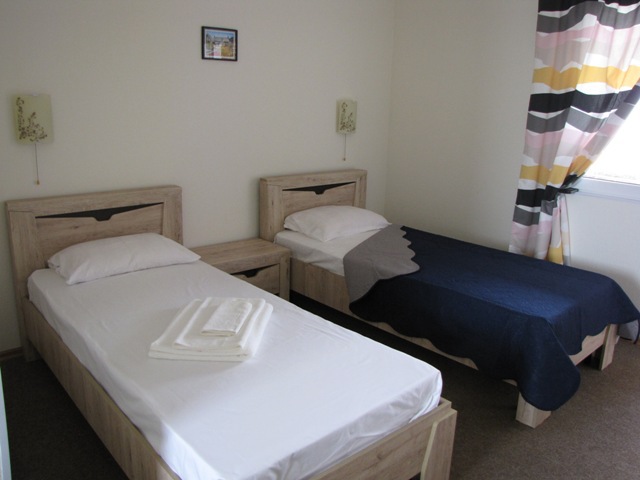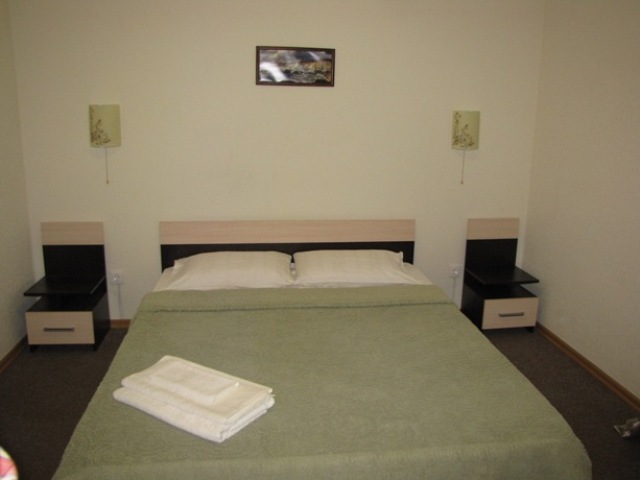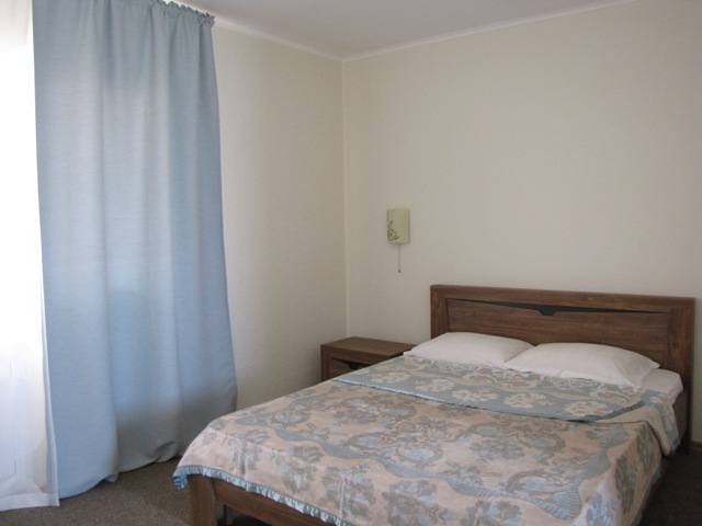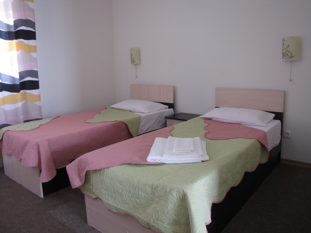 номер в Гостином доме «Алмарис» оборудован современной мебелью ( кровати с ортопедическими матрацами (двухспальная или две односпальные) ,прикроватные