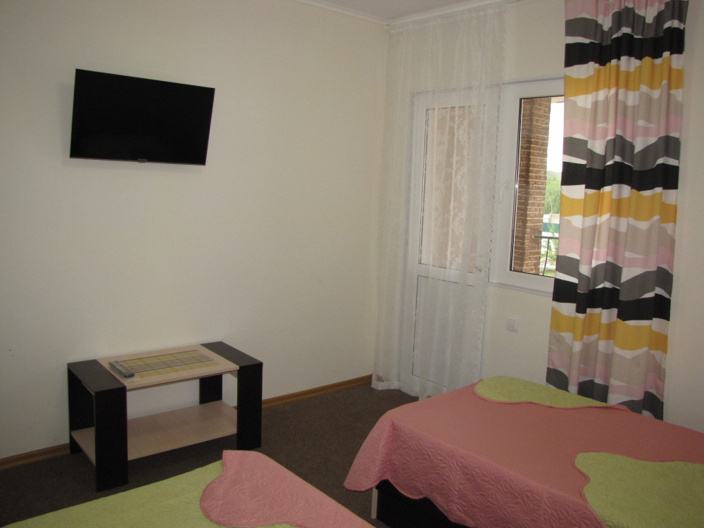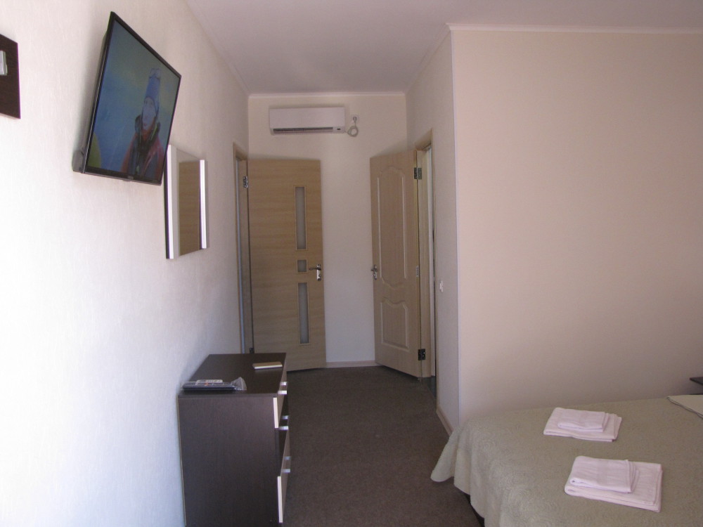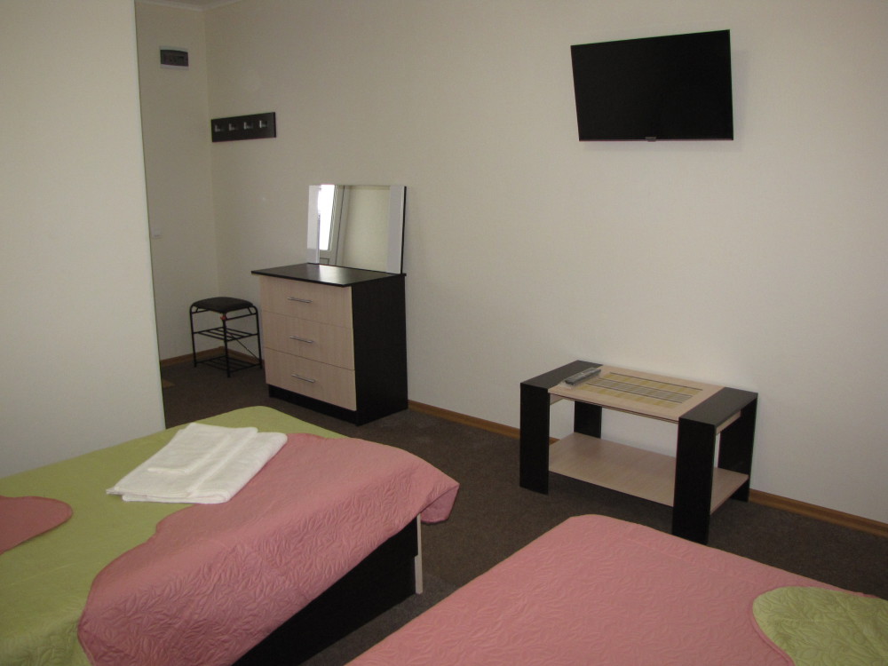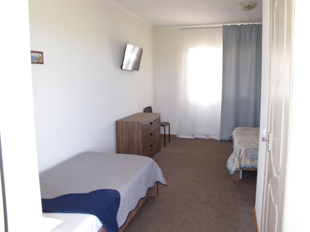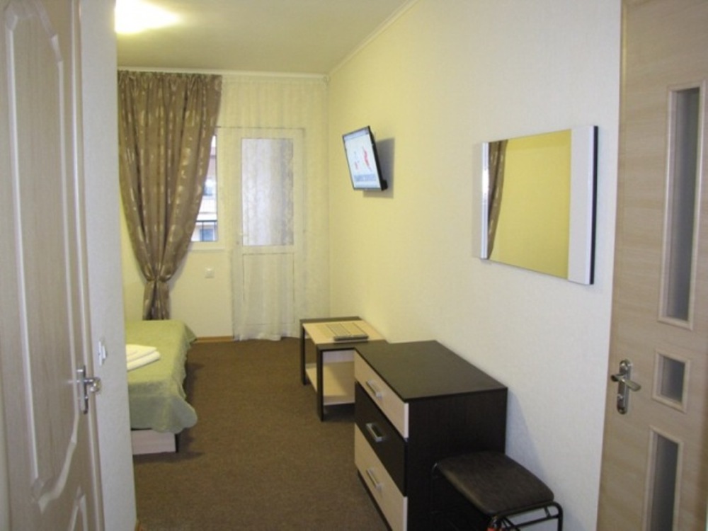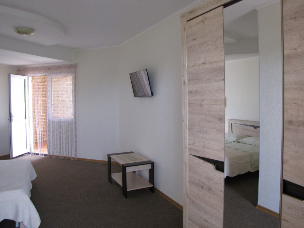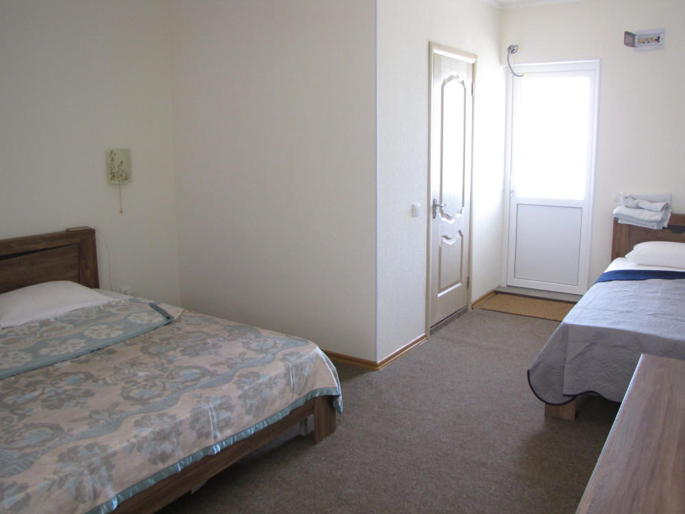 номер полулюкс для троих. Этот номер в Гостином доме «Алмарис» оборудован современной мебелью ( кровати с ортопедическими матрацами (двухспальная или две односпальные) ,прикроватные