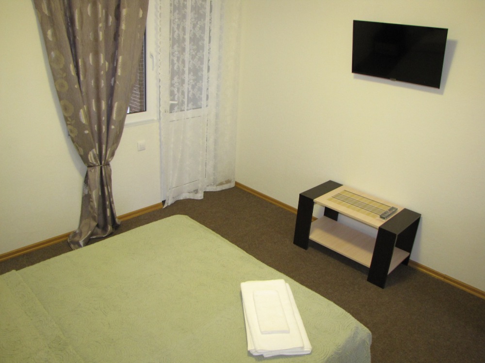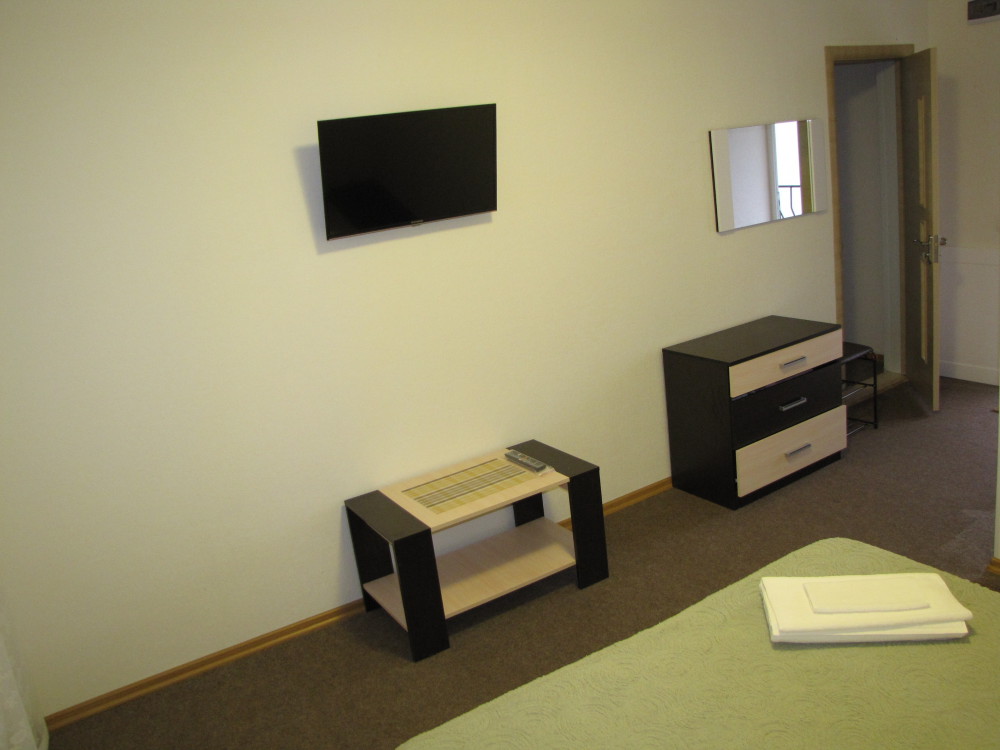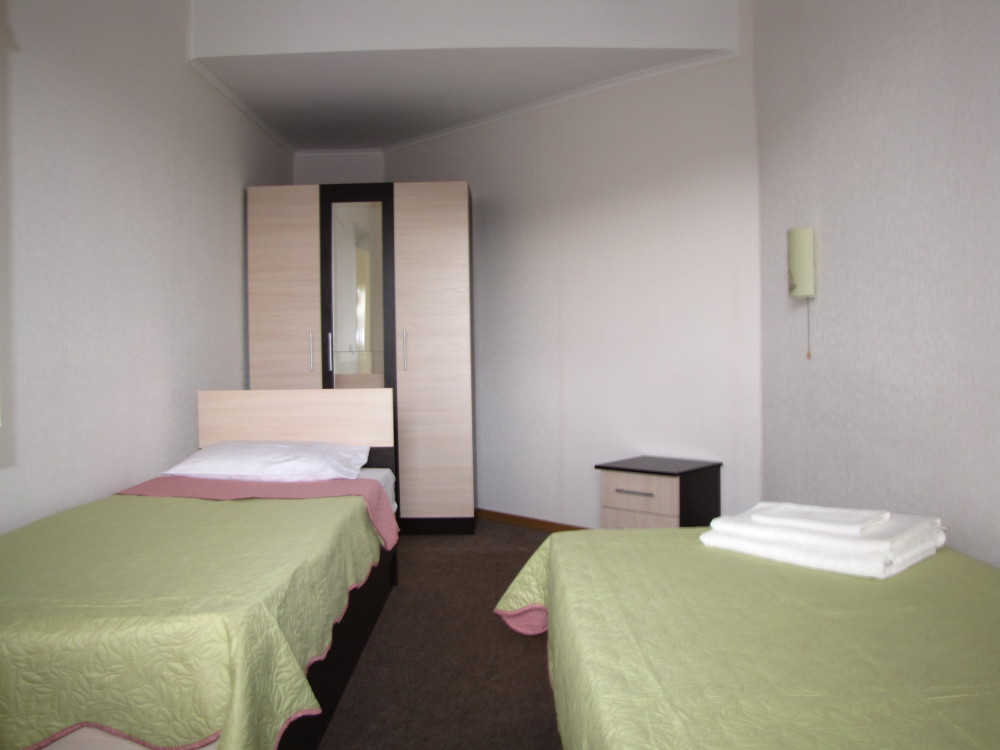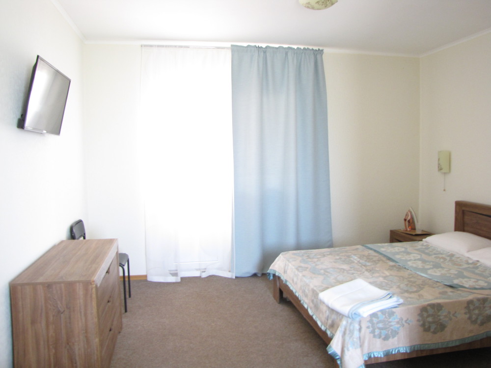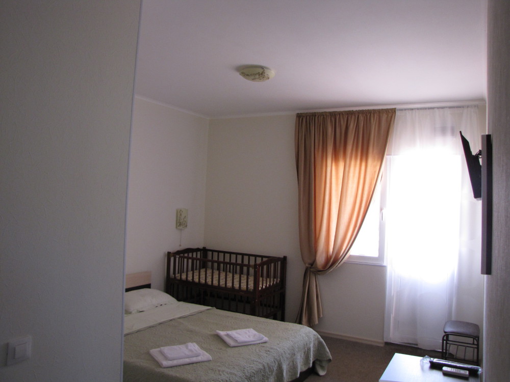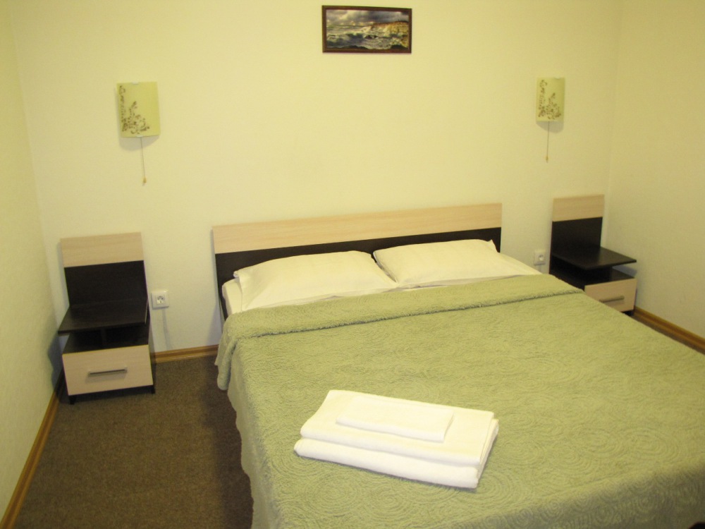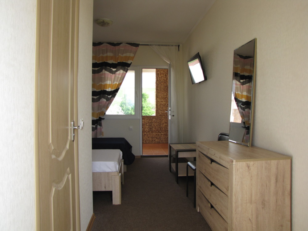 номер полулюкс для троих. Этот номер в Гостином доме «Алмарис» оборудован современной мебелью ( кровати с ортопедическими матрацами (двухспальная или две односпальные) ,прикроватные