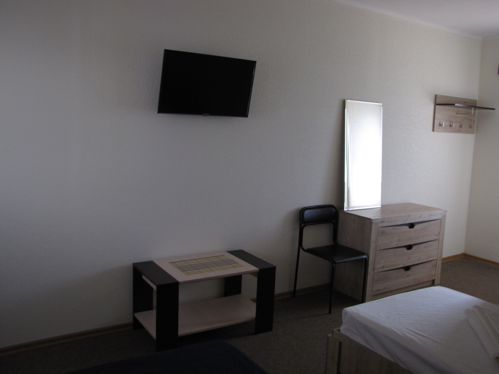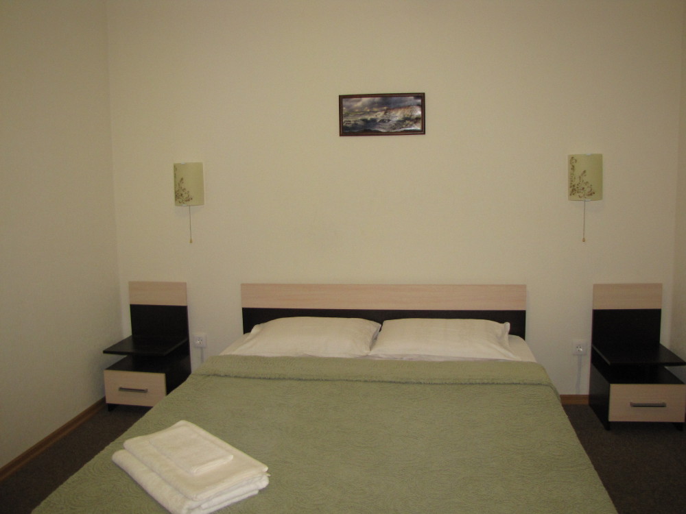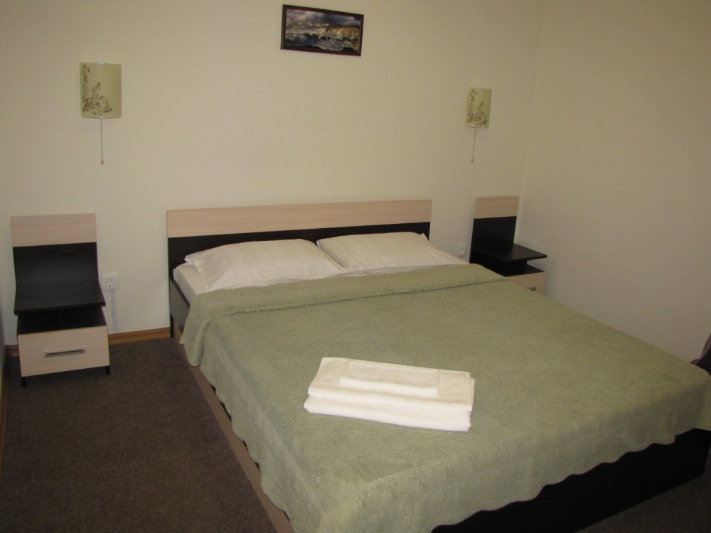 Стандартный номер для троих. Этот номер стандарт в Гостином доме «Алмарис» оборудован современной мебелью ( кровати с ортопедическими матрацами (двухспальная или две односпальные) ,прикроватные