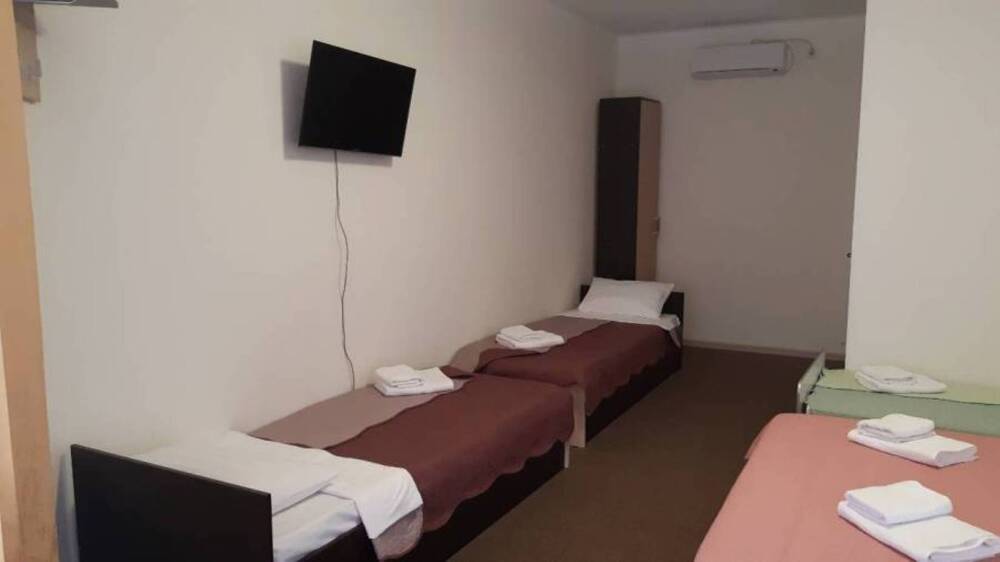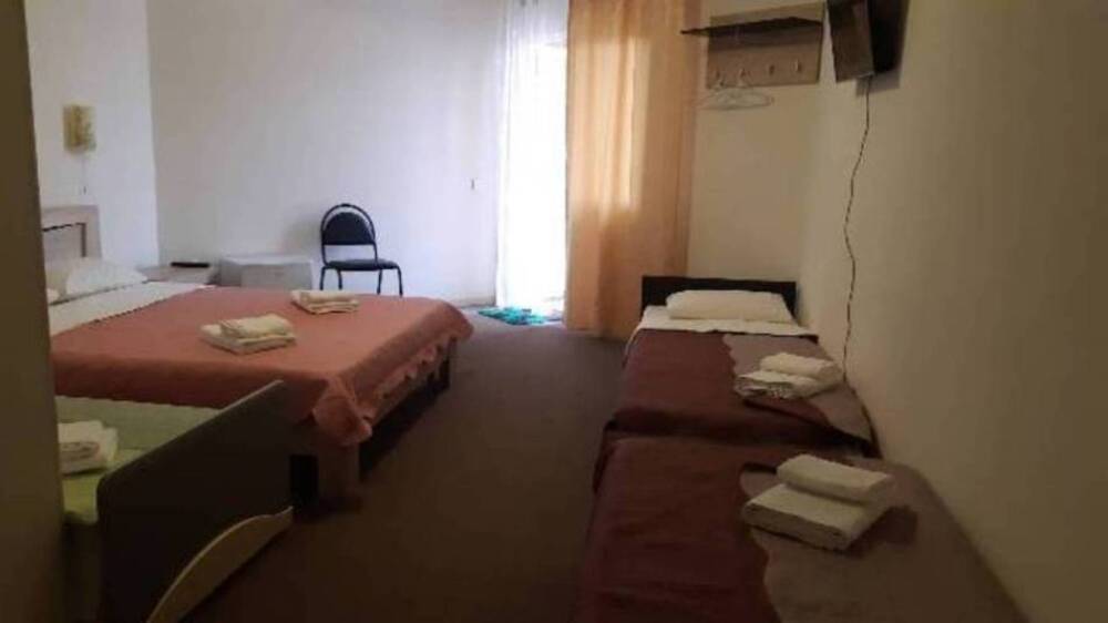 В номере -Двухместная кровать + 3 одноменстных,телевизор,интернет,туалет,душ,постельное,полотенца,летняя мебель на балконе