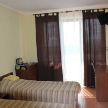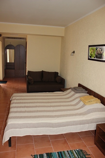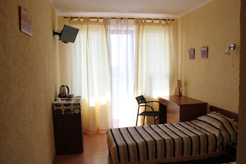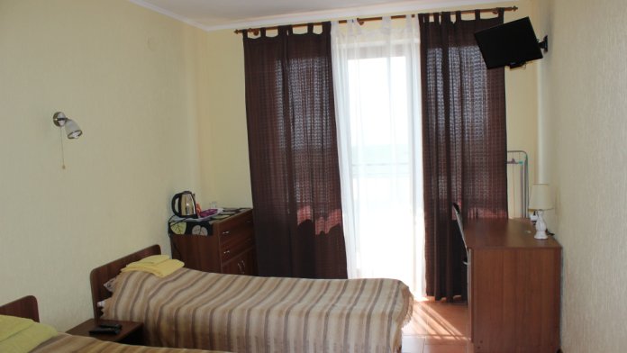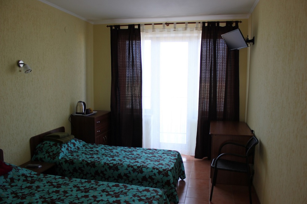 Гостиница представляет собой современной здание с номерами категории «Люкс». Номера располагают удобной мебелью и современной бытовой техникой. Большинство из них оснащены балконами. В номерах к Вашим услугам: холодильники, кондиционеры, телевизоры, чайники, посуда, санузлы,сейфы. Есть доступ в интернет Wi-Fi. Подача горячей и холодной воды осуществляется круглосуточно. Балконы второго этажа гостиницы с видом на море разделены перегородками. На каждом балконе находится ротанговая мебель для отдыха.