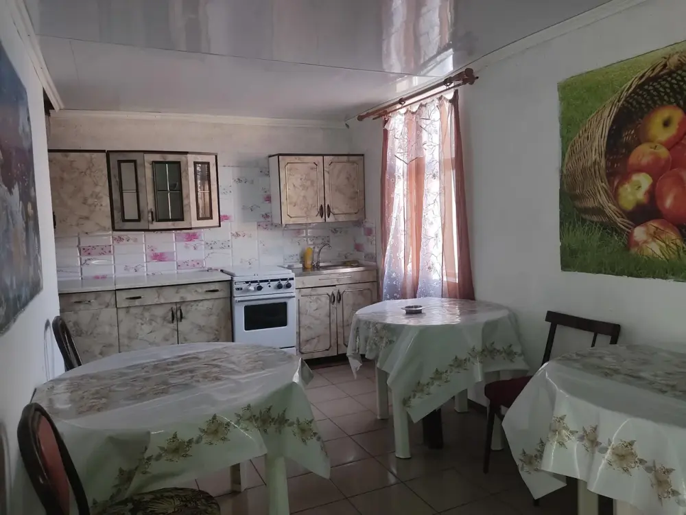 На территории гостевого дома есть летняя кухня со всей необходимой техникой и посудой. Холодная и горячая вода - круглосуточно. Работает Wi-Fi. Имеется парковка , встречаем на машине при необходимости.