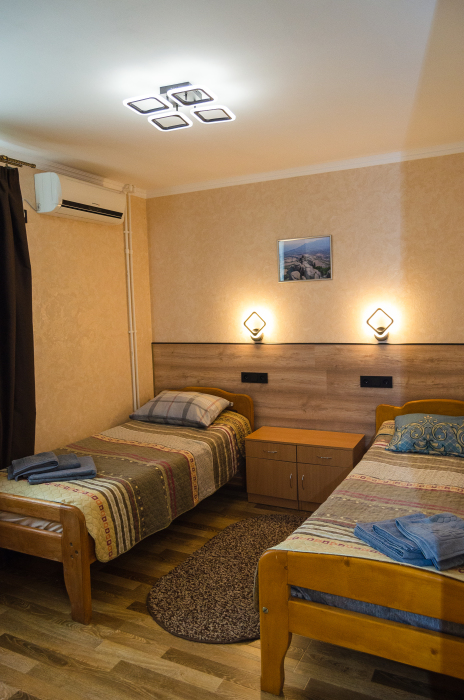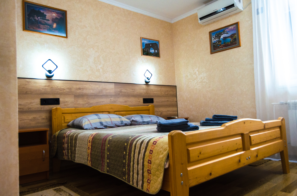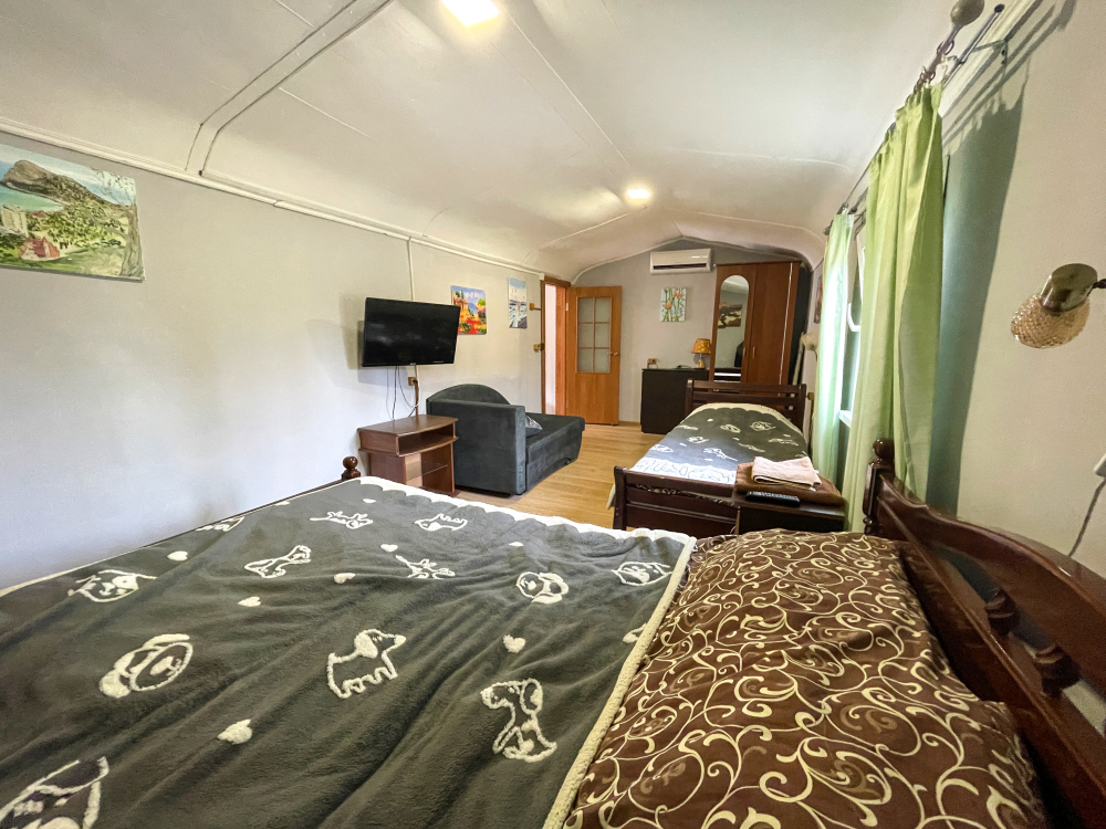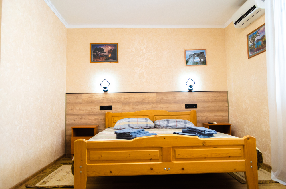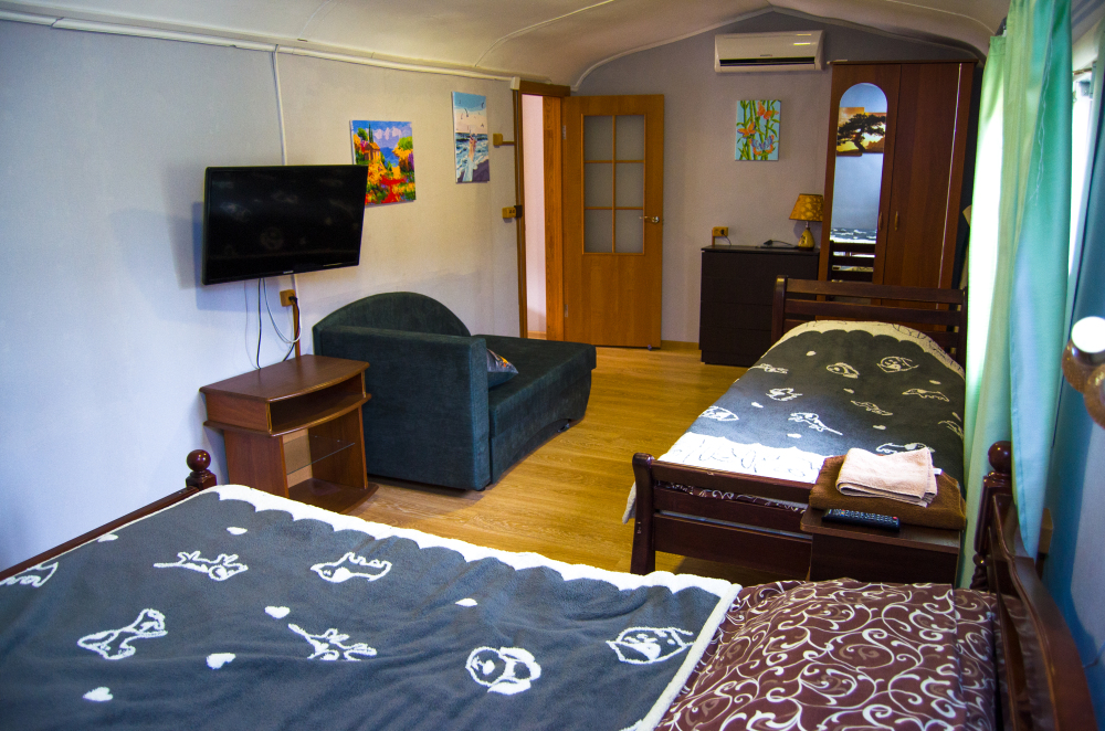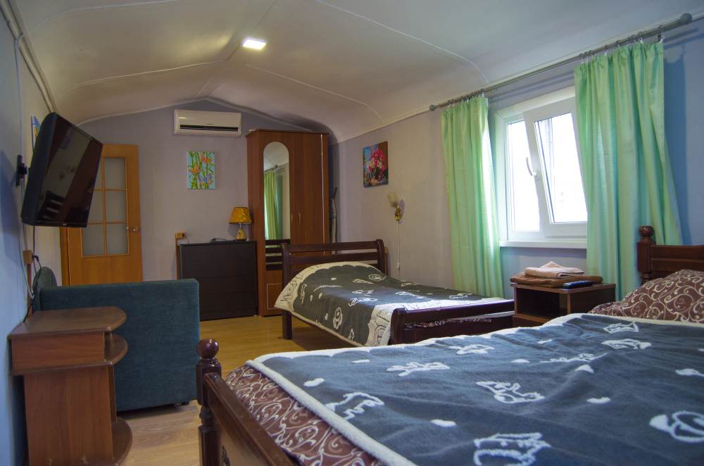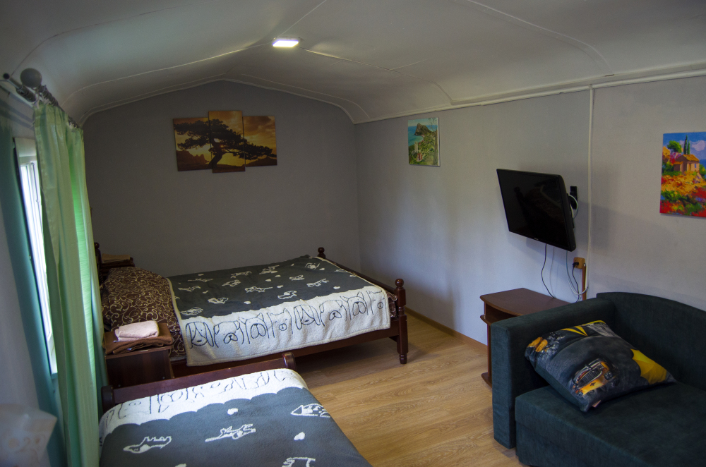 Свой двор с местом для машин, беседки, мангал-барбекю. Шикарный вид на Новосветскую бухту и горы. Номера оборудованы всем необходимым, (в каждом номере кабельное телевидение, WI-FI, сейф, кондиционер.) В зимний период номера отапливаются от собственной котельной. Холодная, горячая вода постоянно.