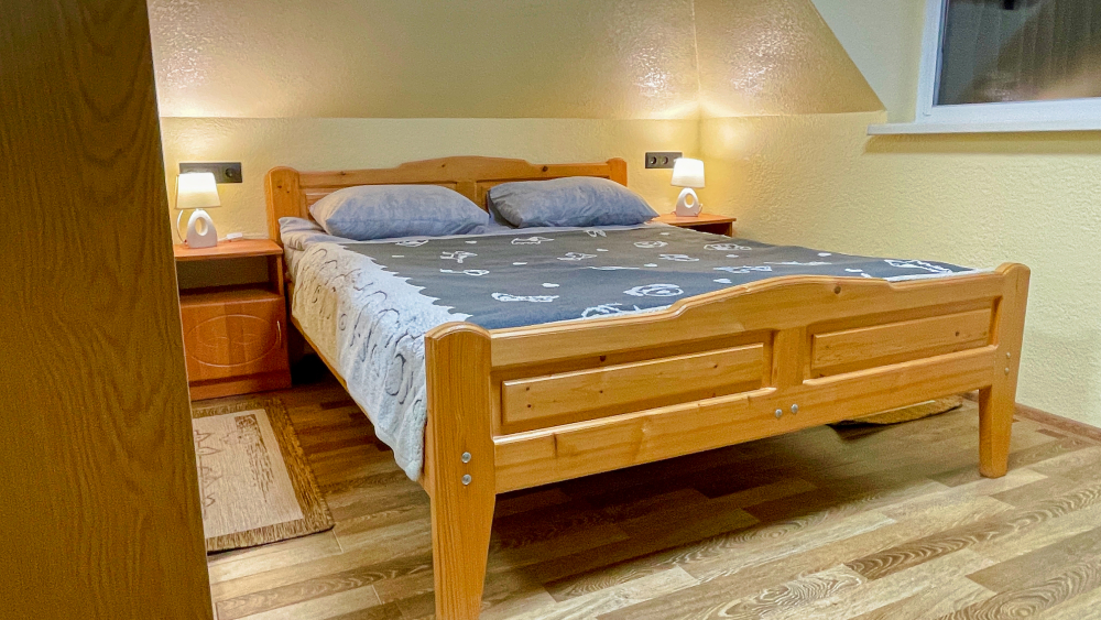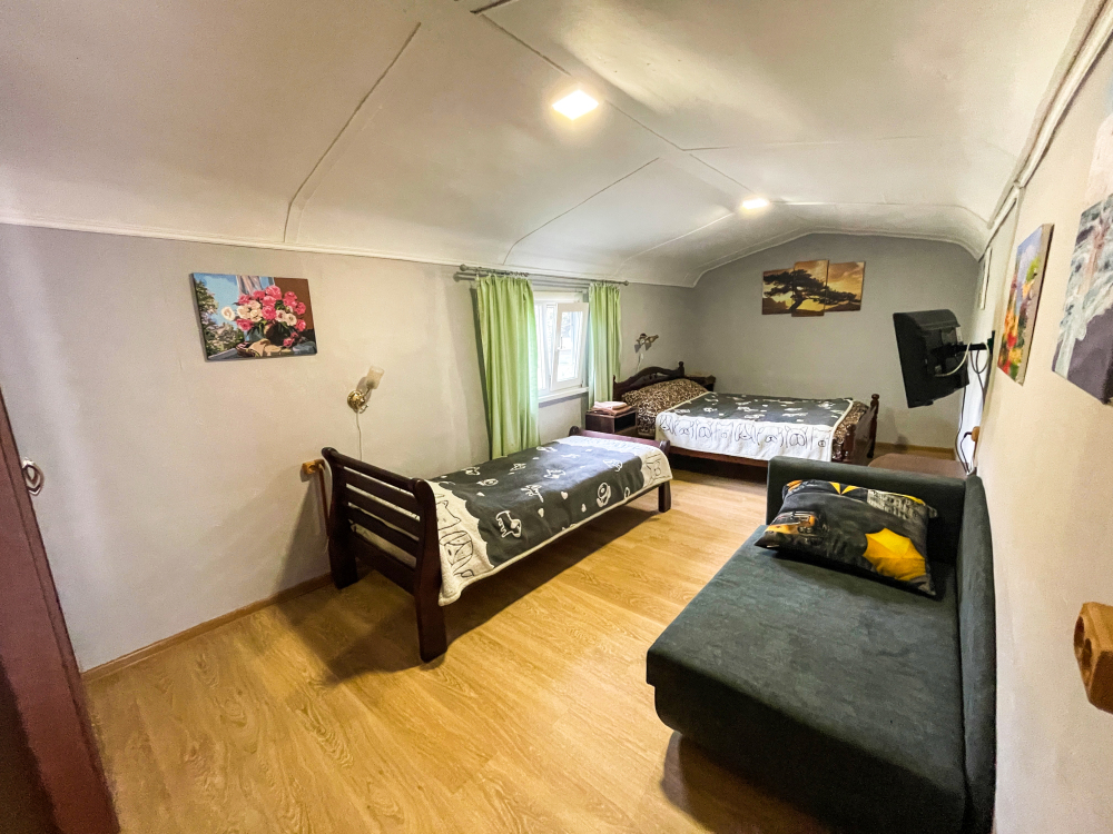 1 двухспальная кровать, 1 односпальная кровать, 1 диван-кровать, детская кроватка