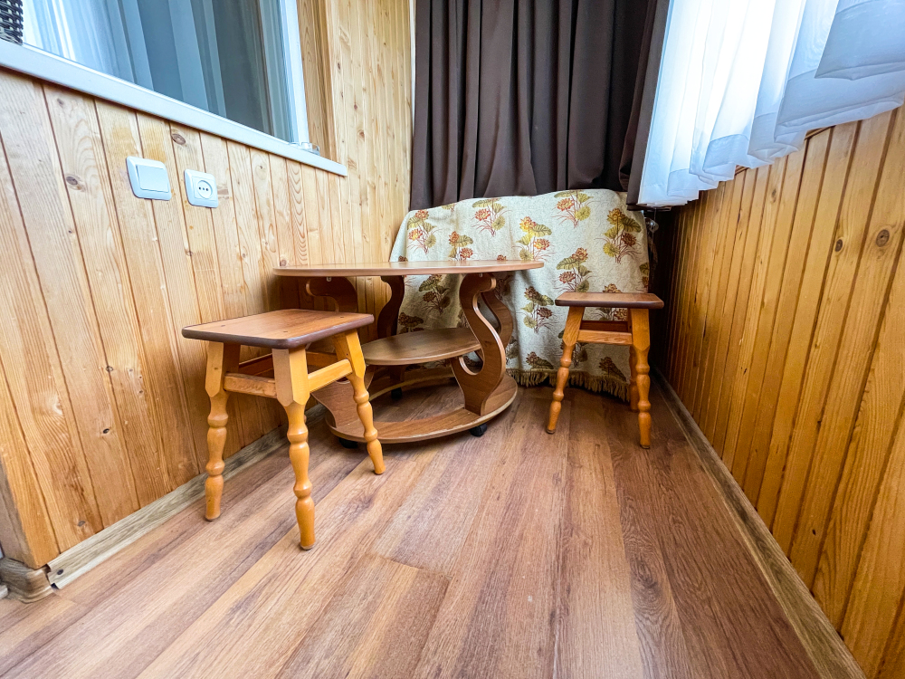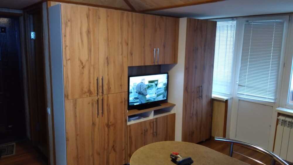 2 балкона. Студия, совмещенная с кухней и спальня. Плита стеклокерамика. Вся необходимая посуда.
