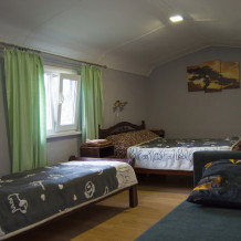 1 двухспальная кровать, 2 односпальные кровати, 1 диван-кровать, детская кроватка
