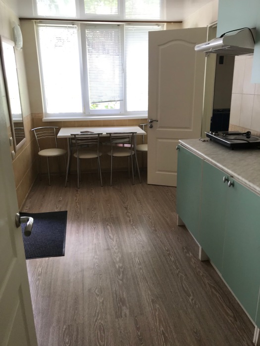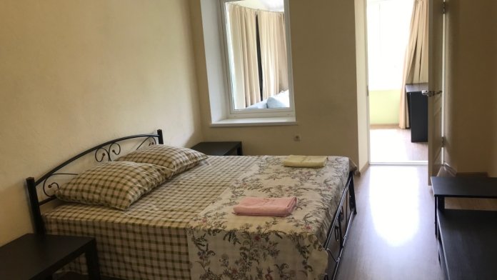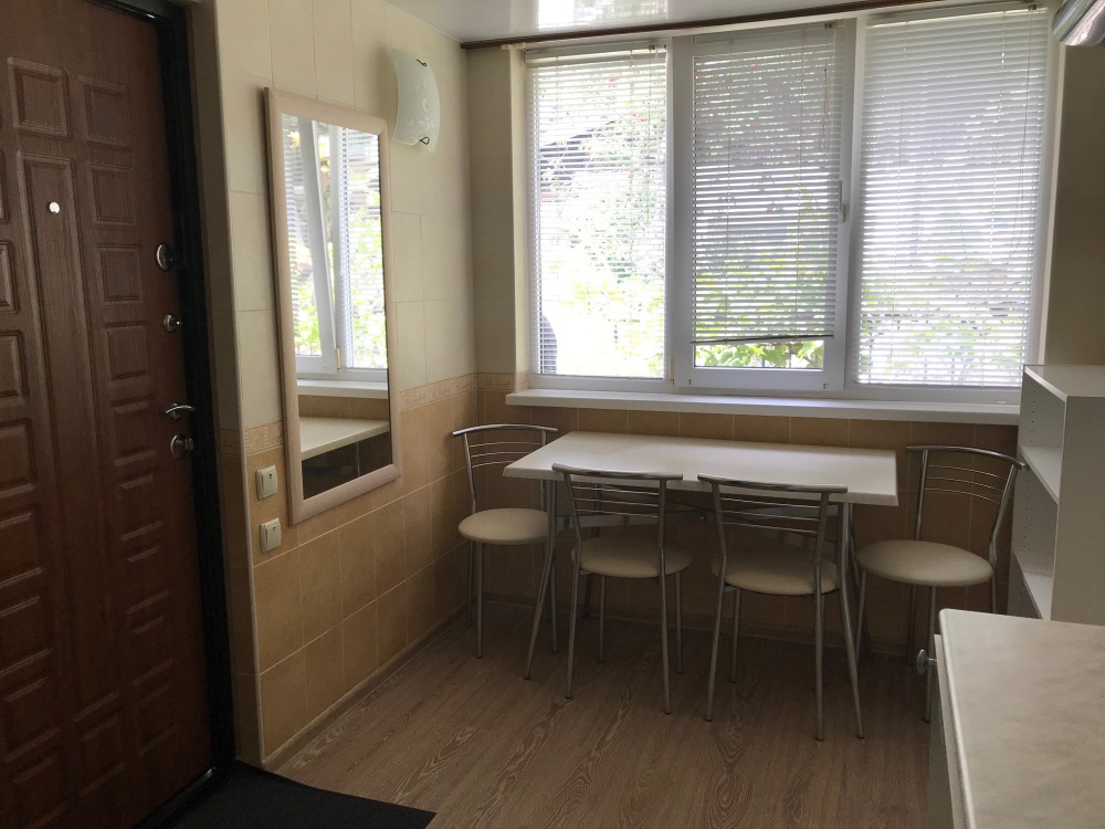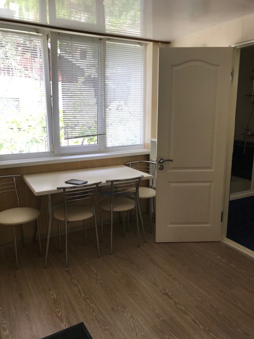 Окна квартиры выходят на сад и на горы, до моря 5 минут пешком. Автостоянка 40 метров, также рядом расположен парк и детская площадка. Недалеко рынок, магазины, парикмахерская, аптека.