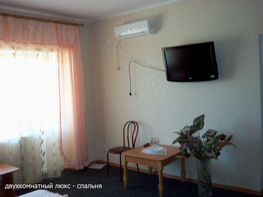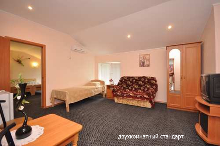 Номера от 17 до 64 кв.м. В каждом номере кондиционер, холодильник, телевизор, эл.чайник, фен, набор посуды, коврик для пляжа, одноразовые тапочки, средства гигиены, набор полотенец. Смена белья каждые пять дней.