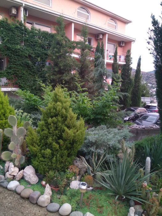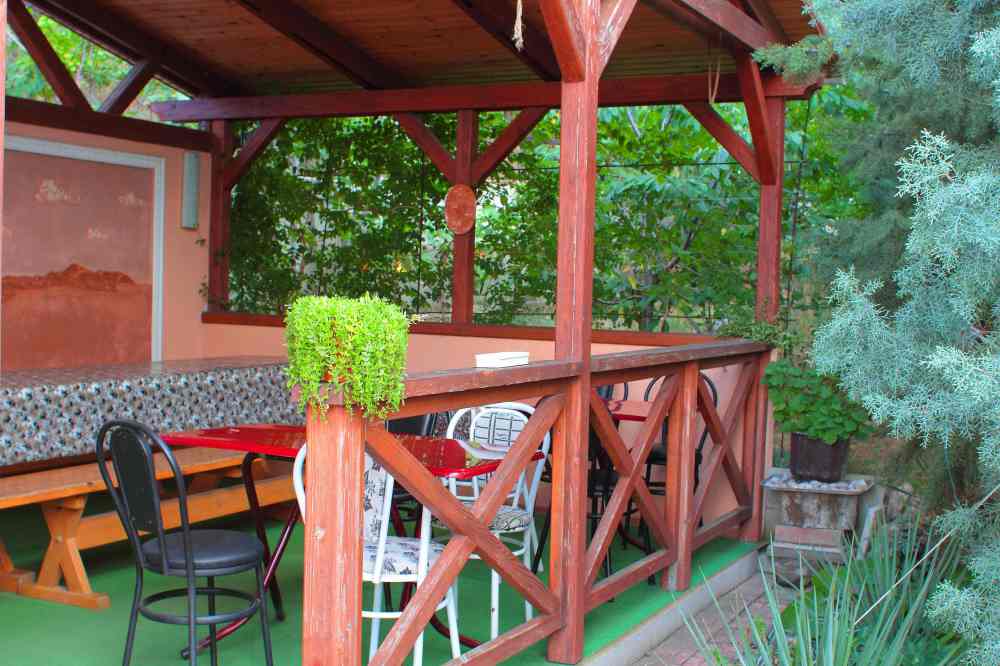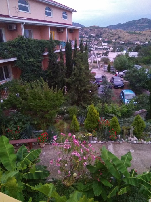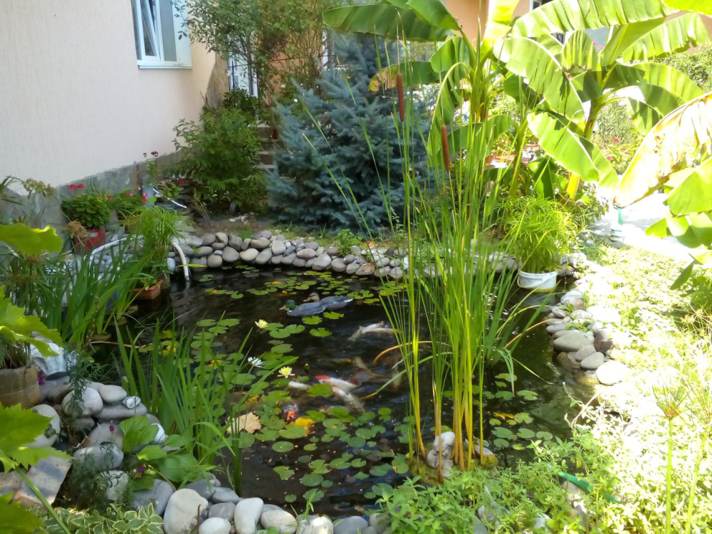 Большой двор, много зелени и экзотических растений. Пруд с японскими рыбкам коя. Во дворе есть кухня, беседка, мангал. Бесплатная стоянка для авто во дворе.