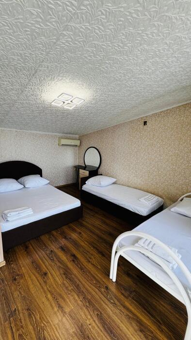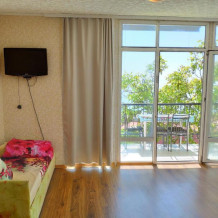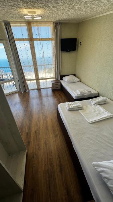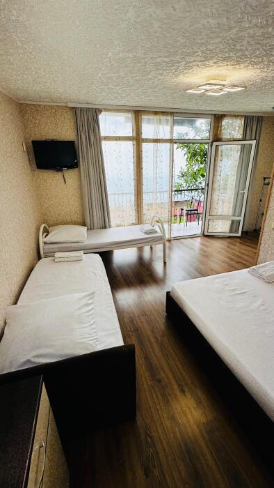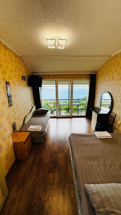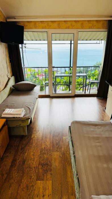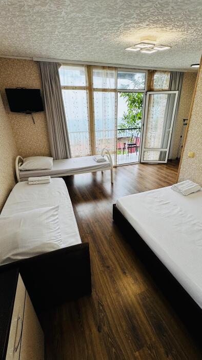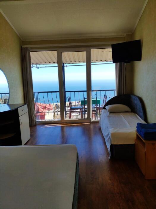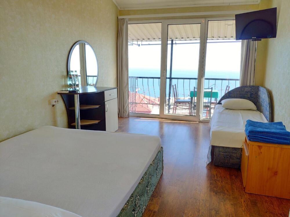 Среди удобств в каждом номере есть кондиционер, телевизор, балкон и терраса. Номера делятся на Стандарт и Комфорт. Номера Комфорт имеют в каждом номере собственную кухню и ванную комнату и рассчитаны на 3 гостей. Номера Стандарт имеют общую кухню и ванную комнату на 3 номера. Обеденная зона укомплектована холодильником, посудой и электрическим чайником. В собственной ванной комнате с душем предоставляются бесплатные туалетно-косметические принадлежности. Из окон открывается потрясающий вид на море и горы (Аю-Даг как на ладони). Каждый номер оборудован телевизором с плоским экраном. Уборка номера производится каждые 5 дней.