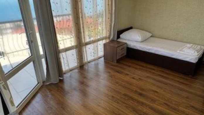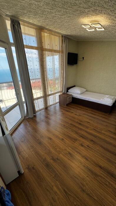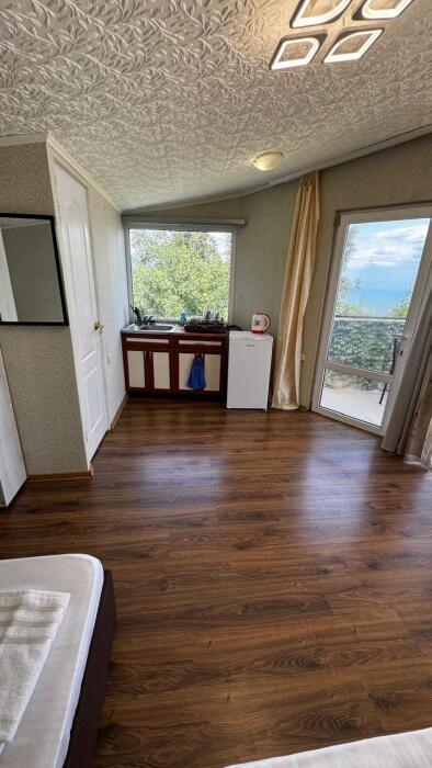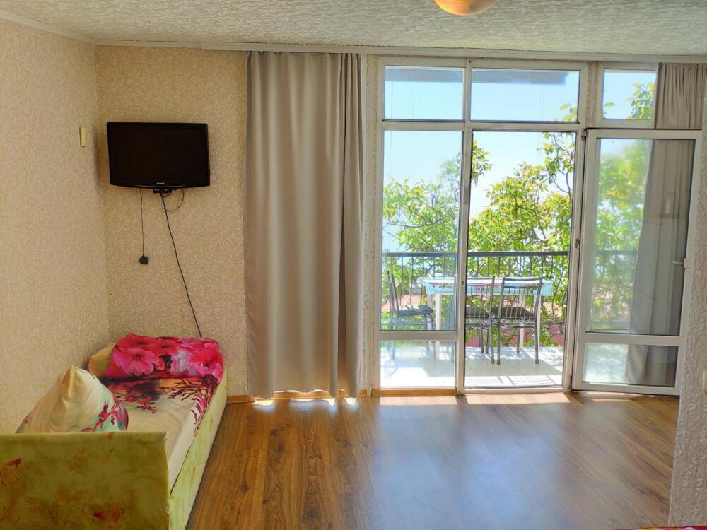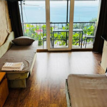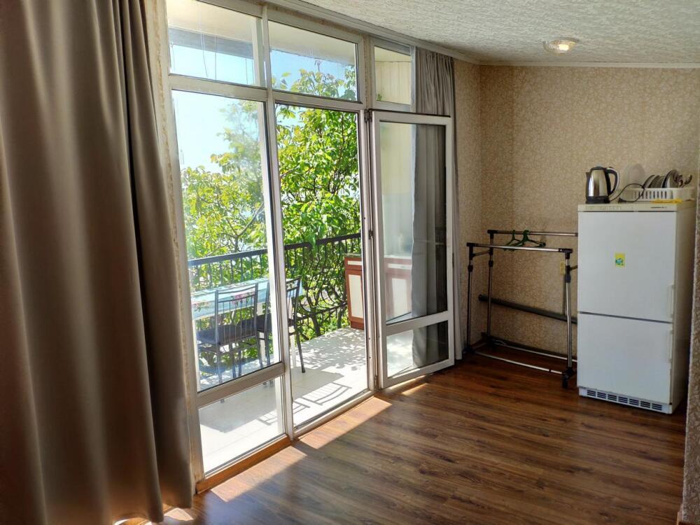 Класс стандарт имеют общую кухню и санузел на 2 номера. Обеденная зона укомплектована холодильником, посудой и электрическим чайником Из окон открывается потрясающий вид на море и горы (Аю-Даг как на ладони:)