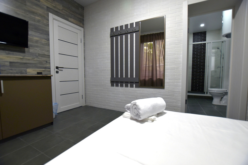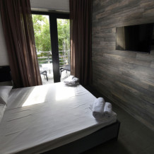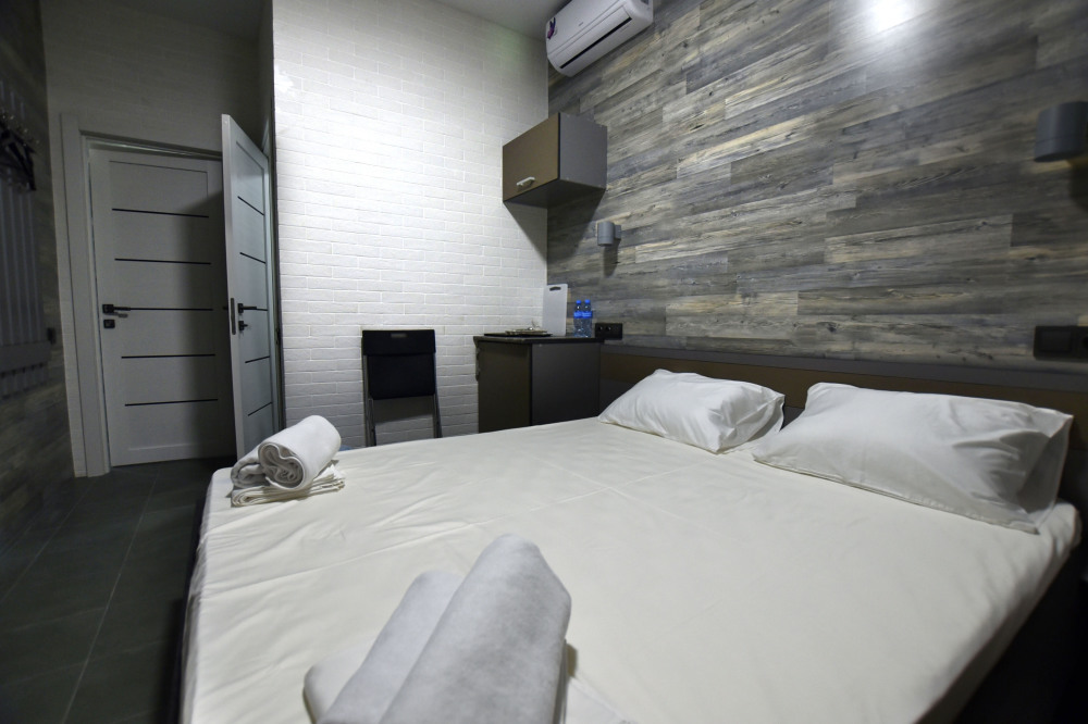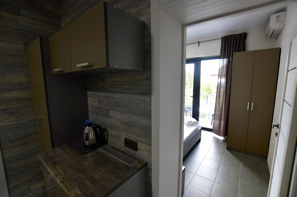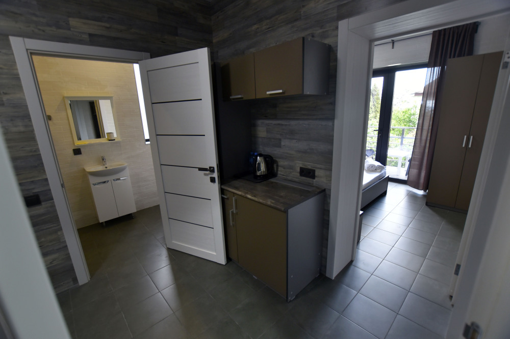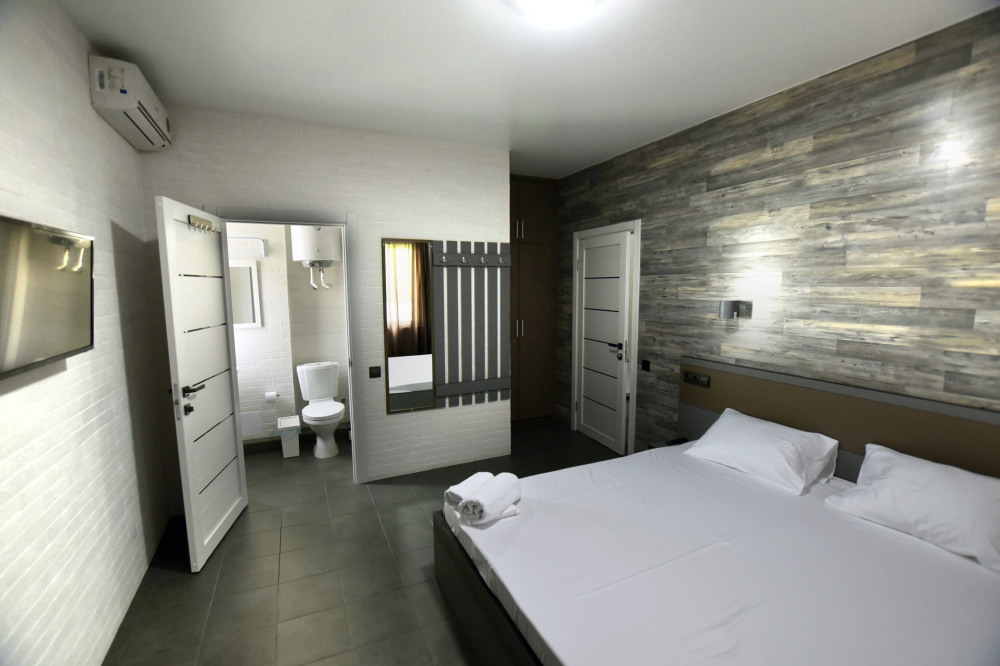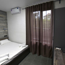Нашим гостям мы предлагаем 9 комфортабельных 2,3,4-местных номеров (площадь каждого номера 25- 40 кв.м.), пять из которых, имеют террасы и оборудованы набором уличной мебели. Все номера оборудованы современными санузлами (фен, гостиничная парфюмерия). Интерьер и экстерьер здания выполнен в стиле модерн, сочетая при этом удобство, функциональность и простоту. Кроме прочего, на территории есть общая кухня для самостоятельного приготовления пищи, а так же беседки, и зоны отдыха.