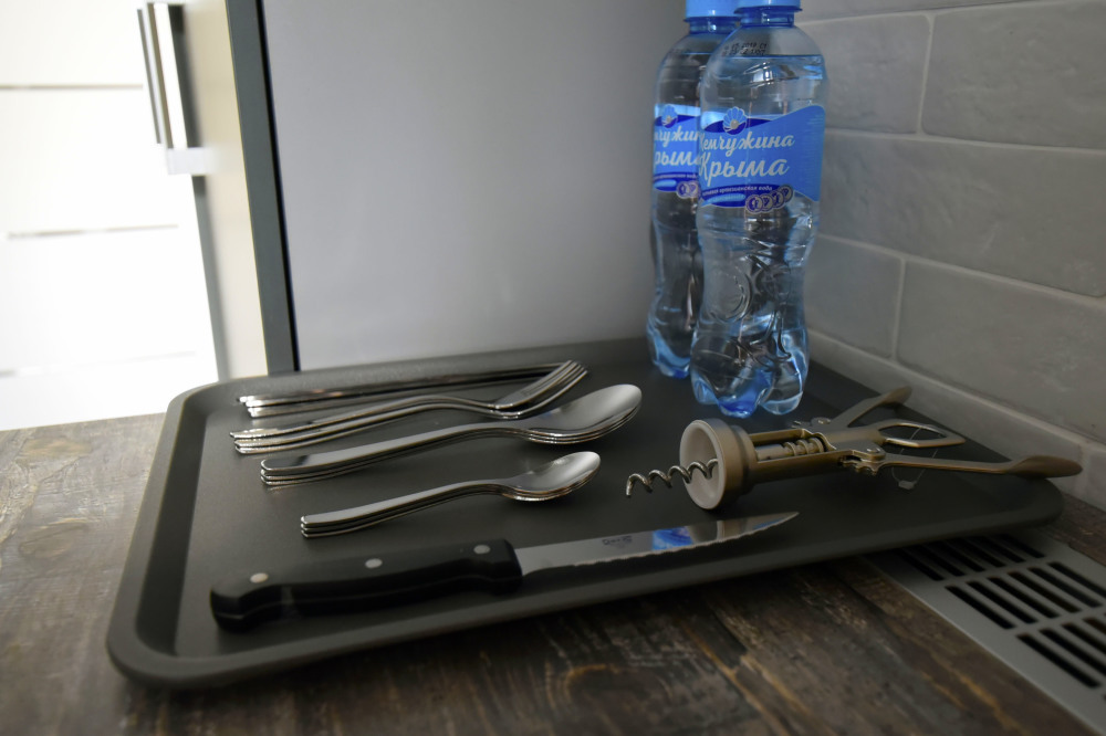 - Электрочайник и набор посуды;