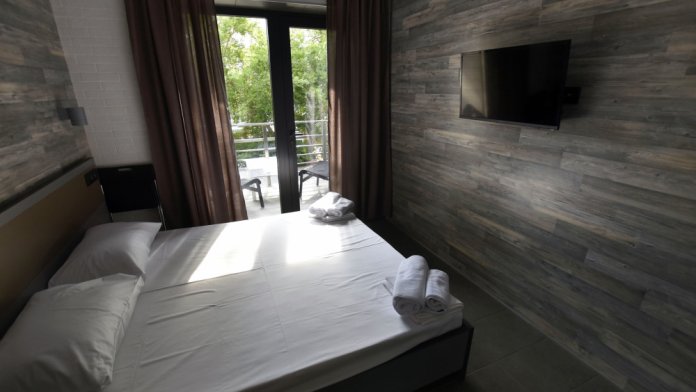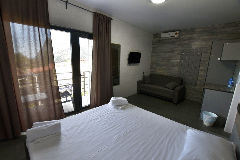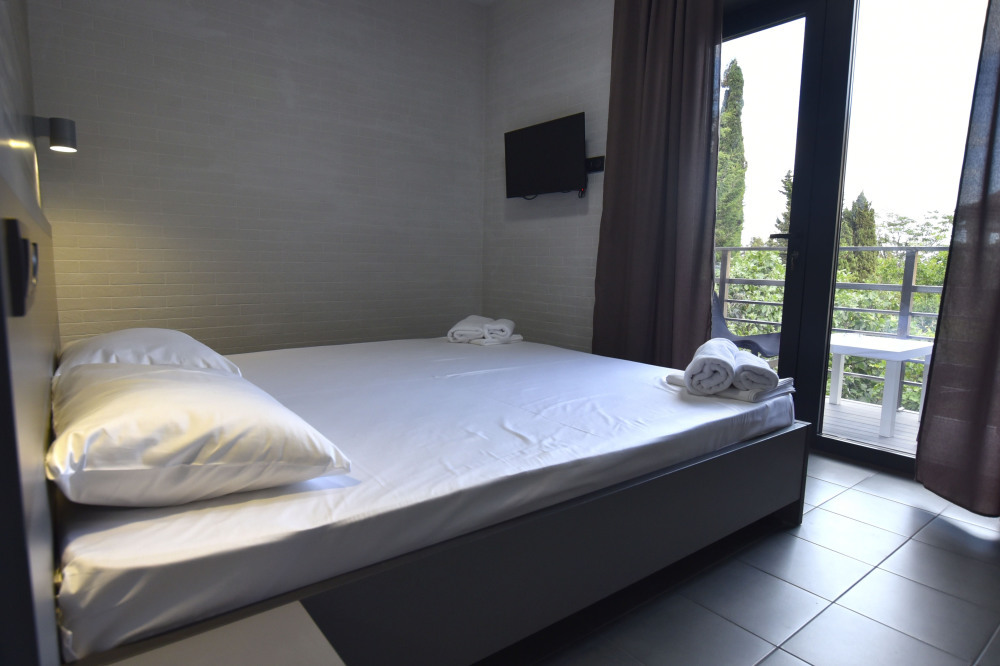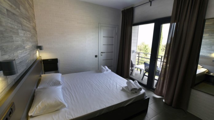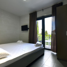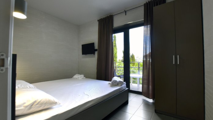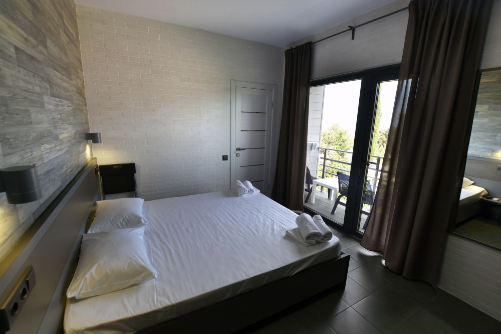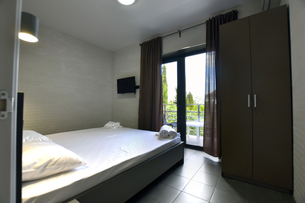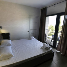 Большой просторный номер с балконом и видом на море. Отлично подойдет для большой семьи, либо для семейной пары и двух детей.