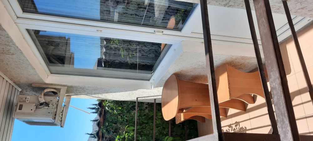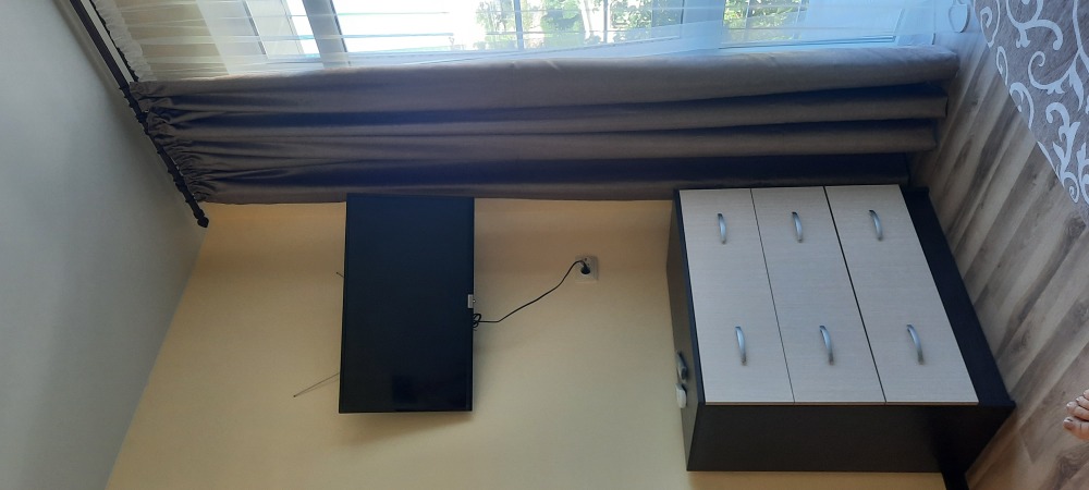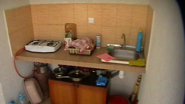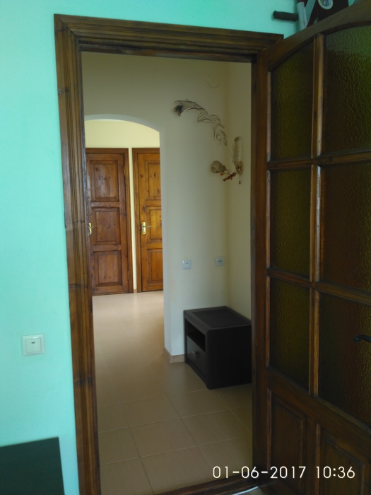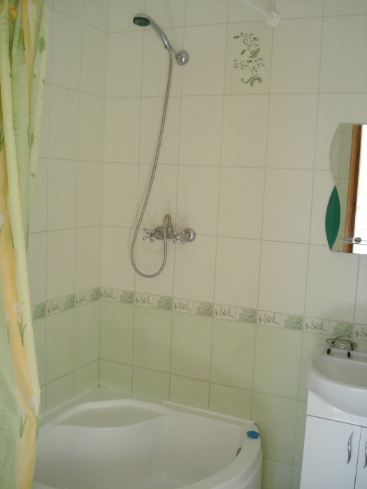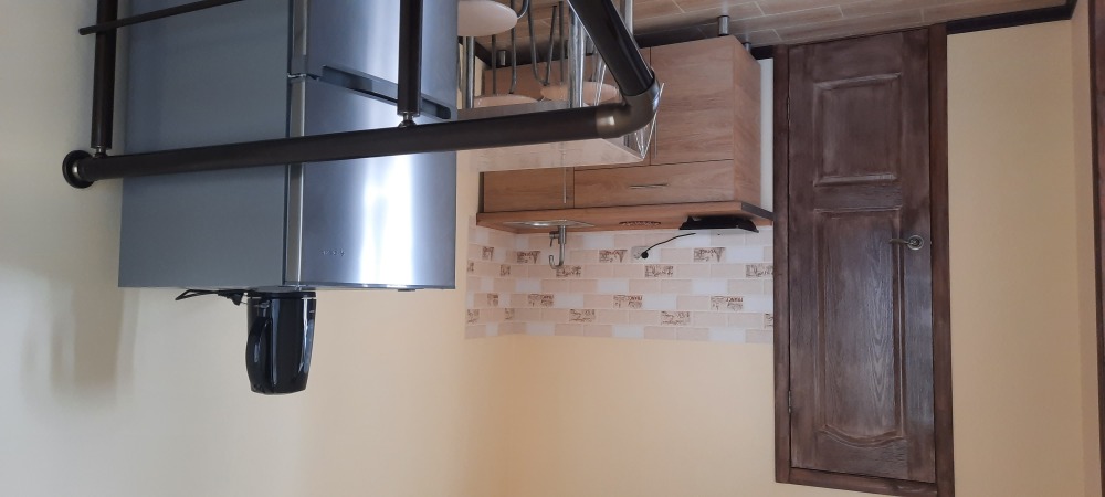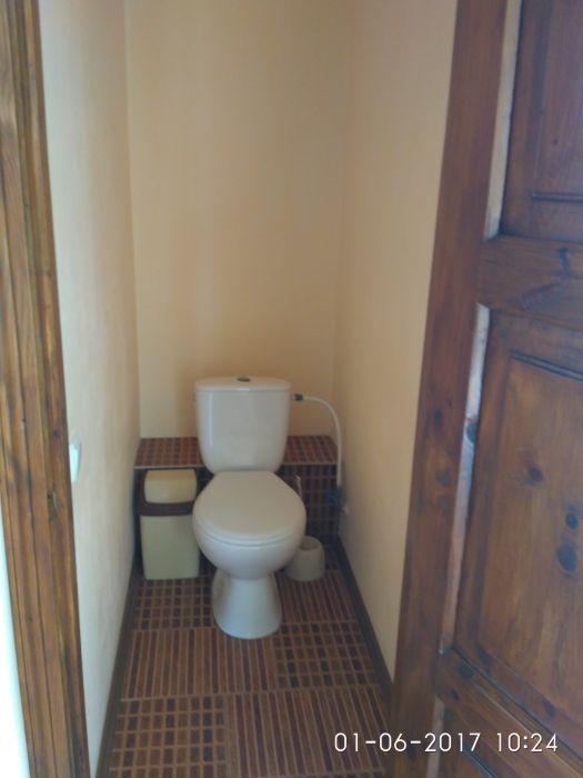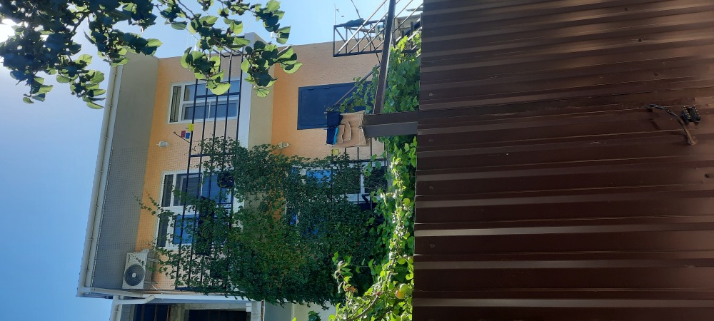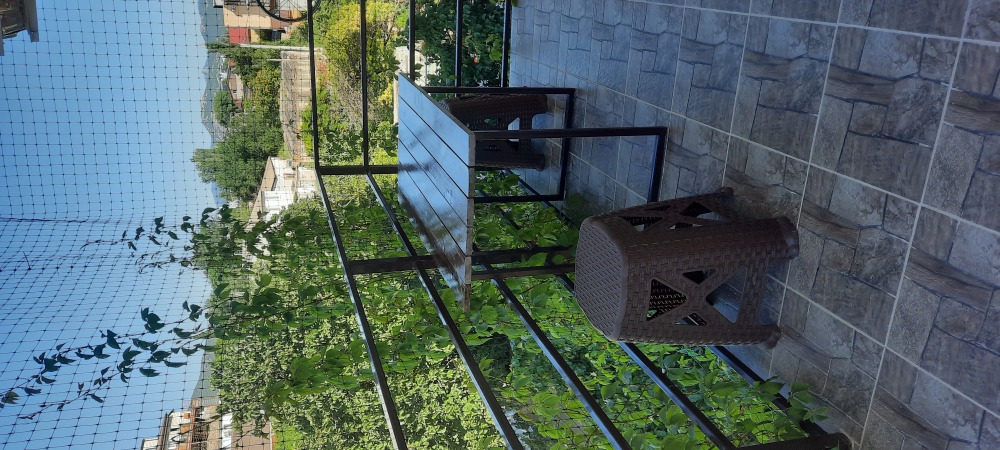 Двухместная комната на третьем этаже. Внутри душ,туалет,телевизор,холодильник,кондиционер. Балкон со столиком ,Хороший вод на горы. Не большая кухя на этаже на две комнаты.