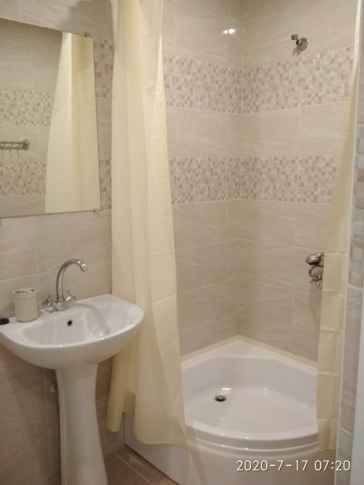 Трехместная комната эконом на первом этаже. Внутри душ туалет,телевизор ,вентилятор. Кухня общая холодильник на кухне.