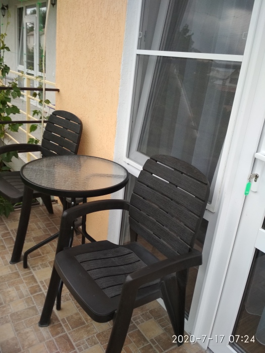 Номер на втором этаже. Расчитан на 2-4 чел. Внутри кухня,душ,туалет,кондициоер,телевизор.Балкон со столиком.
