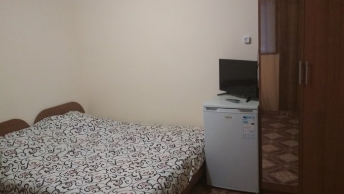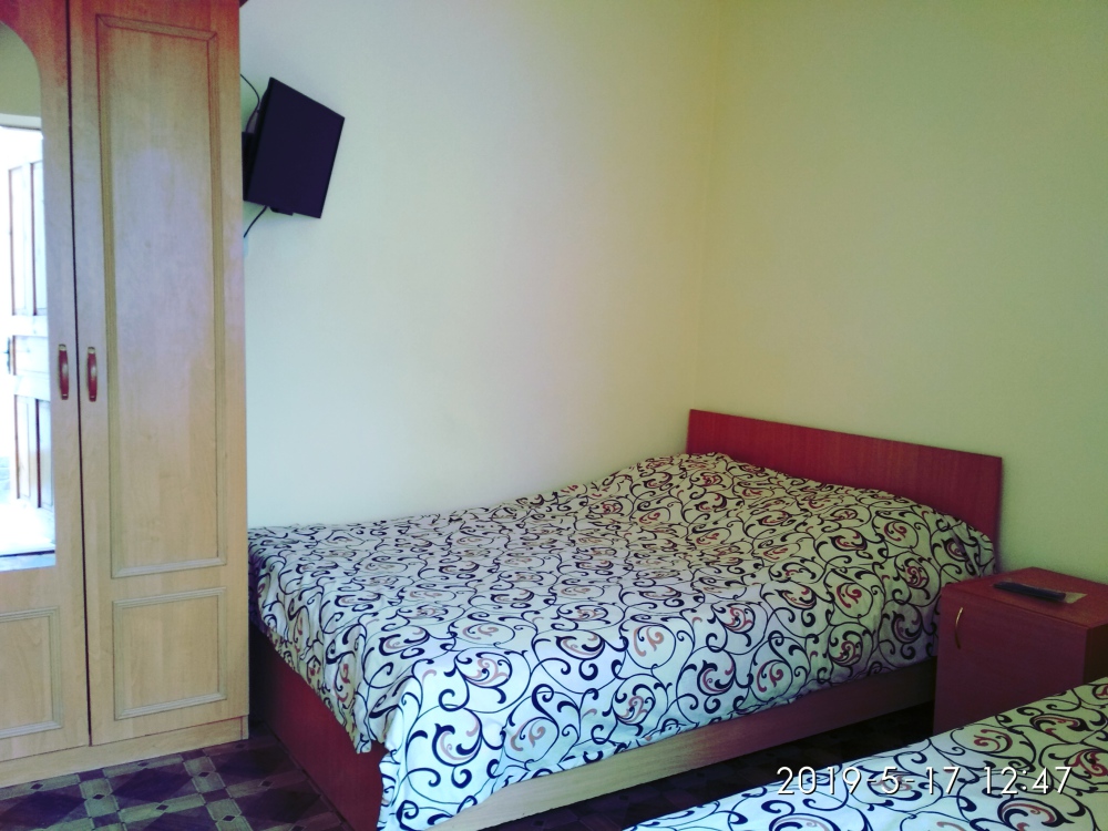 Не большая двухместная комната на втором этаже. Вутри душ,туалет,телевизор,холодильник,кондиционер.Кухня общая.