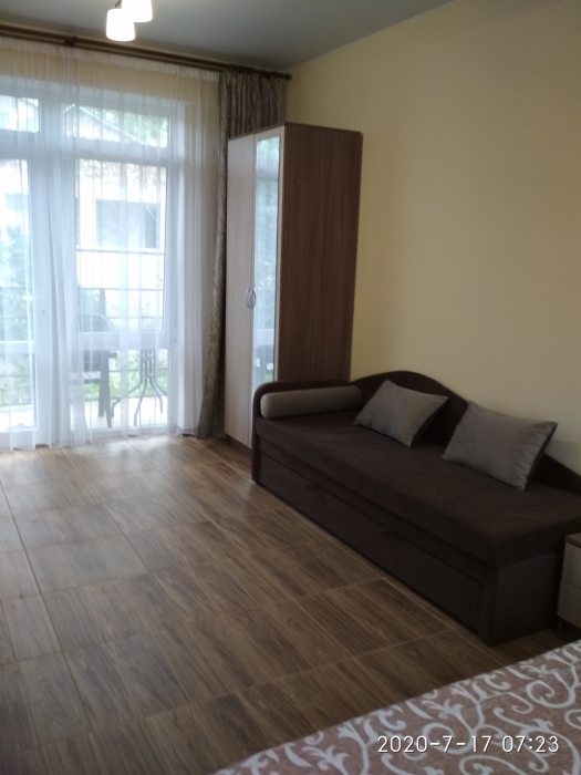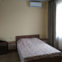 Номер в коттедже на третьем этаже . Прекрасно подойдёт семьи с детьми или двух пар. Две двухместные комнаты по 9 м.кв В каждой комнате двуспальная кровать, шкаф,комод,тумбочка,телевизор,кондиционер. Одна из комнат с балконом. В номере есть санузел(душ туалет раковина).Также в номере кухня холодильник,чайник,индукционная плита.