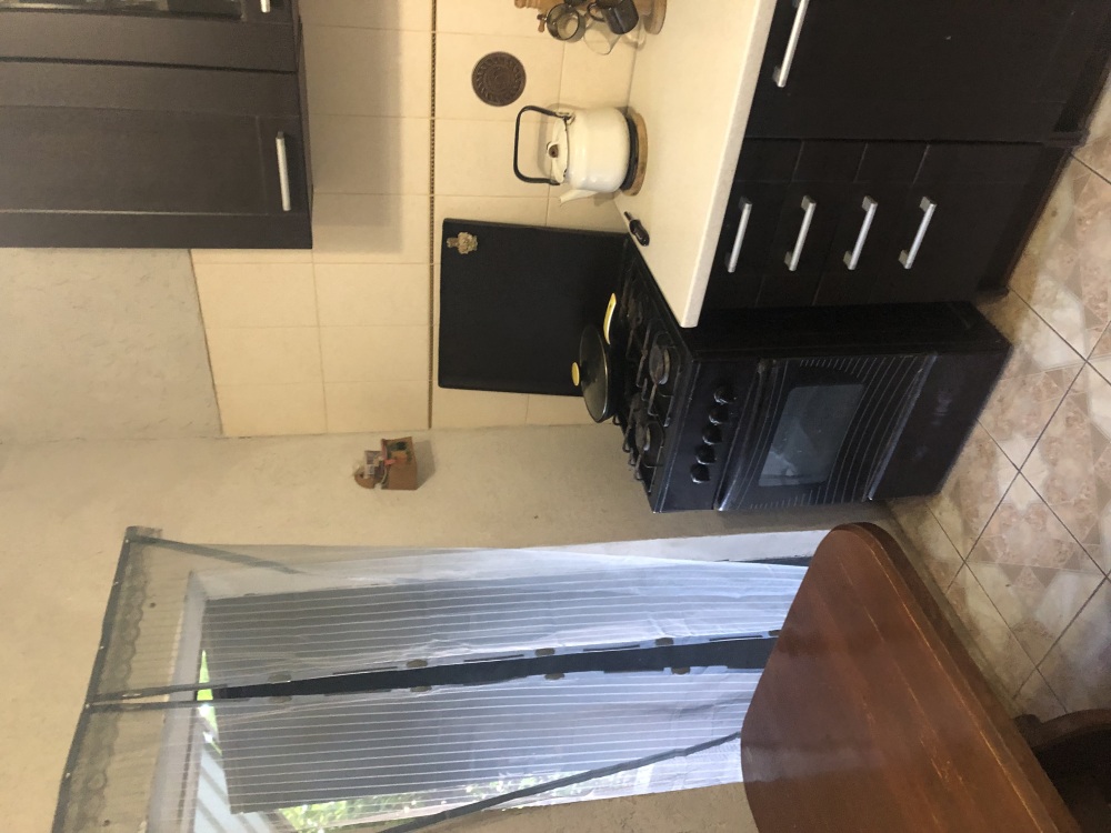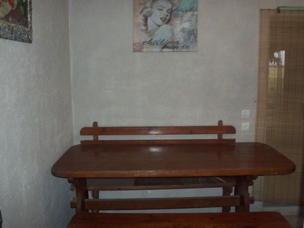 Выход на задний двор, есть мангал и принадлежности(шампура и решетки), пластиковая садовая мебель.