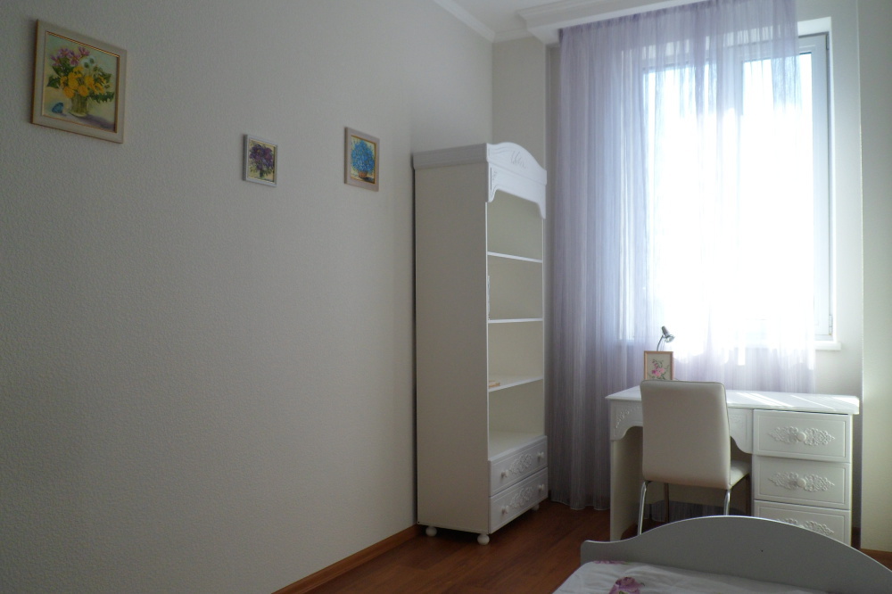 Детская комната - кровать, детский инвентарь, прикроватная тумбочка, шкаф, комод, стол письменный, стул, дополнительный электрообогреватель, настольная лампа. Есть антенный выход для подключения тв.