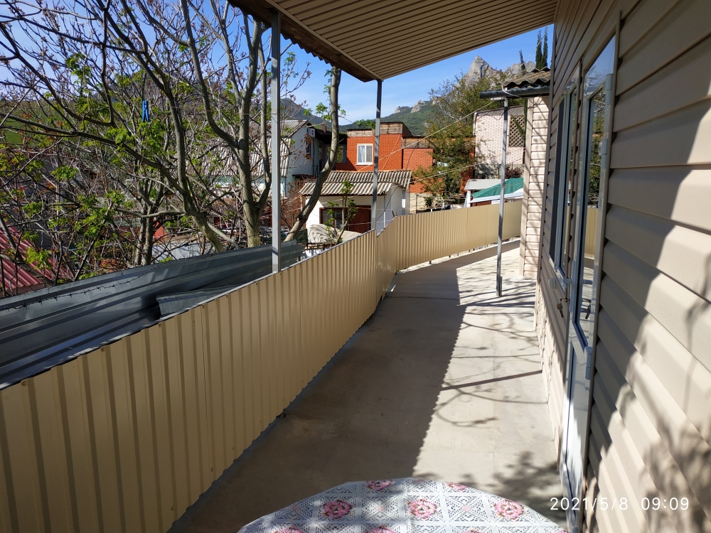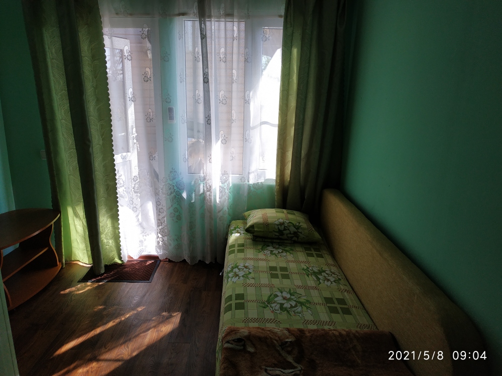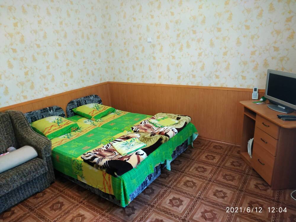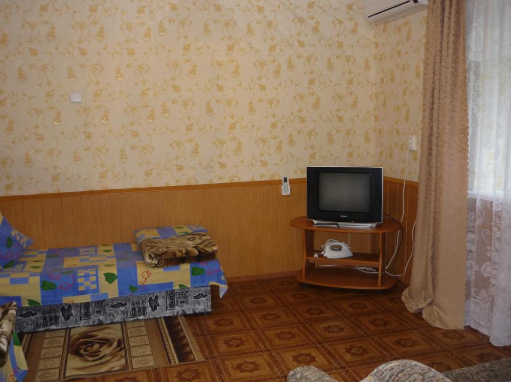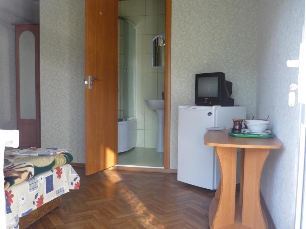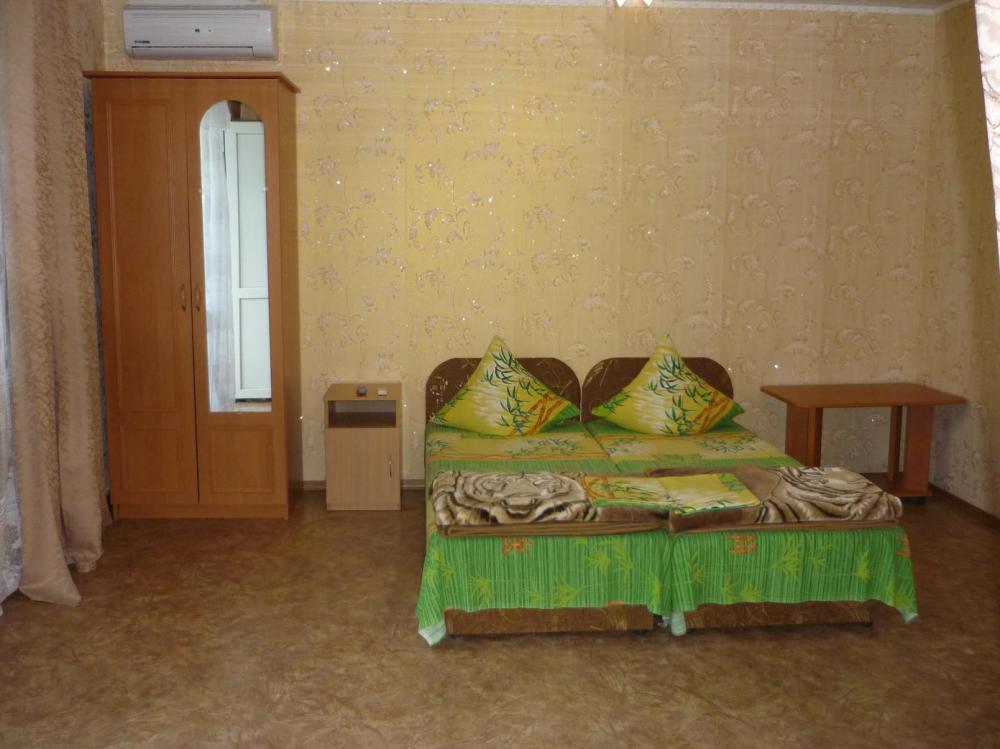 «Стандарт» двухместный расположен в отдельном домике, перед входом столик. В номере односпальная кровать и диван-кровать, шкаф, холодильник, телевизор, кондиционер, Туалет и душ. Вид из номера на горы Коктебеля.