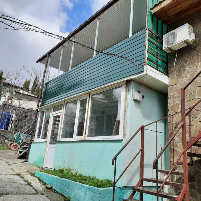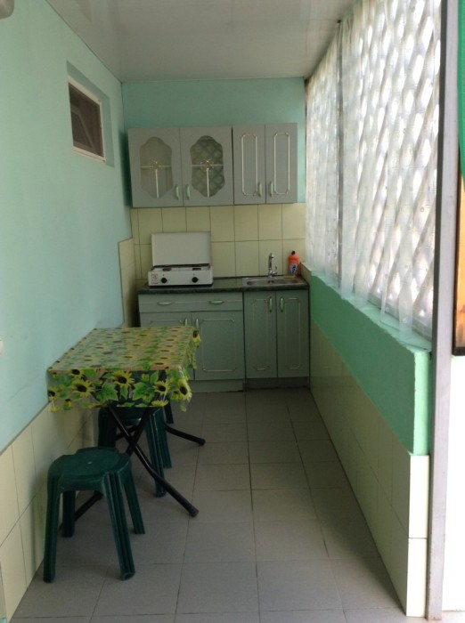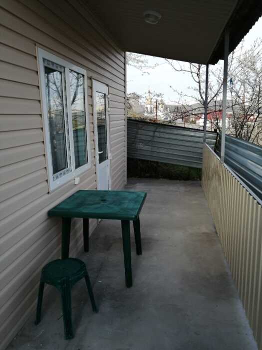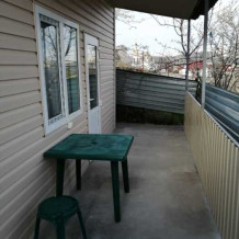 Четырехместный номер расположен на первом этаже двухэтажного домика. Перед входом в номер оборудована летняя кухня со столовой зоной. В номере две спальные зоны, имеются кровати, которые можно сдвигать и получается полноценная двухспальная кровать. Туалет и душ в номере совмещённый. Имеется шкаф, кондиционер, холодильник телевизор.