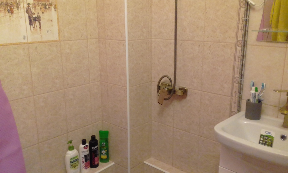 Свой душ, санузел раздельно. Кухня со всем необходимым (плита, посуда). Хороший, красивый ремонт. Есть стиральная машинка, холодильник, утюг,микроволновка, место для парковки.