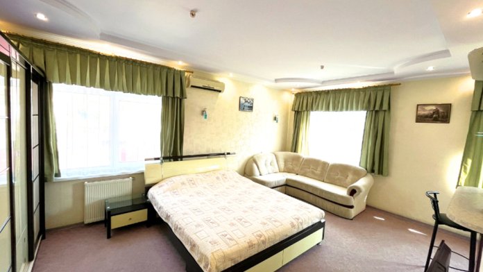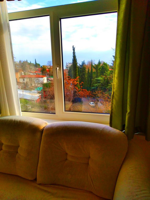 Апартаменты люкс 503 (квартира-студия) на 5-м этаже гостиничного комплекса, с видом из трёх окон на море и горы. В квартире есть всё необходимое для комфортного отдыха: кондиционер, wi-fi, большая двуспальная кровать, раскладной двуспальный диван, шкаф-гардероб, кухня со всей необходимой посудой, электроплита, холодильник, мультиварка, микроволновка, стиральная машина, барная стойка, сейф, фен, утюг, гладильная доска, сушилка, одеяла, подушки, полный комплект постельного белья и полотенец по количеству проживающих.