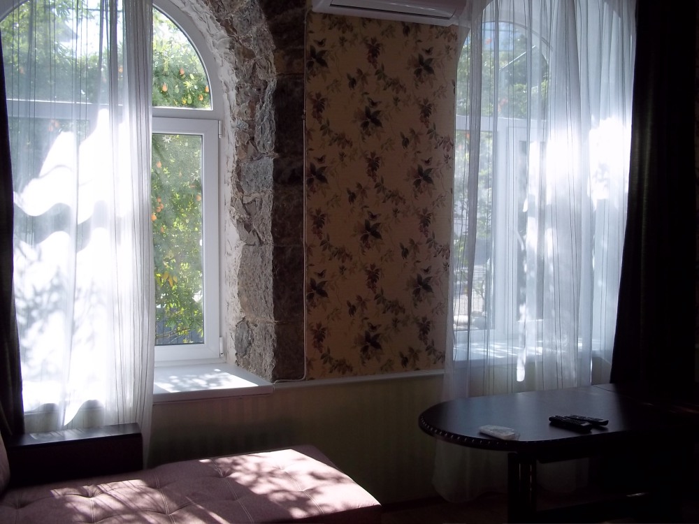 Данный дом в качестве жилья для отдыха нам очень понравился, чисто уютно и очень комфортно. При доме имеется комфортная и очень уютная, обвитая виноградом беседка, в которой можно хорошо отдохнуть и покушать. Тут же расположен небольшой фонтанчик, который выключателем можно в любое время включить и выключить. Для желающих пожарить мясо или приготовить шашлык, буквально тут же стоит мангал для приготовления шашлыков, которым мы в силу разных причин не воспользовались. Имеется и площадка для стоянки автомобиля, что будет очень и очень удобным для тех, кто приезжает в "Мисхор" на своём автомобиле. Единственное, что лично мне в этом доме немножко не понравилось, так это то, что он расположен у дороги, и весь шум и грохот от проезжающего мимо транспорта, а также громкие разговоры проходящих мимо него людей очень сильно мешают. Днём на это, как правило не обращаешь внимания, но вот поздними вечерами. и ранними утрами, при открытых окнах это очень сильно мешает спать, да и вообще просто отдыхать. Более того, люди идущие мимо дома по дороге, вполне себе могут заглядывать в окна спальни, что некоторые иногда и делают и данное обстоятельство нам честно говоря не доставляло удовольствия. Конечно, некоторые на это могут сказать так, что мол вечером окна можно и шторами закрыть, либо вообще их закрыть, для того, чтобы не слышать шума, но в этом случае свежий воздух в спальную комнату поступать не будет, либо будет поступать в недостаточном колличестве, что тоже не очень комфортно. В общем, на будущее хозяевам этого дома данный ньюанс необходимо как-то учесть, для того, чтобы хотя-бы чем-то или как-то закрыть для посторонних видимость с улицы. А так, этот дом очень и очень комфортен для отдыха, я его рекомендую.